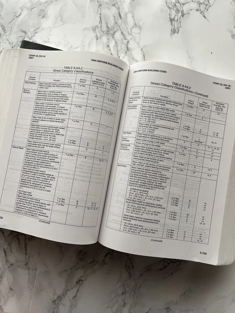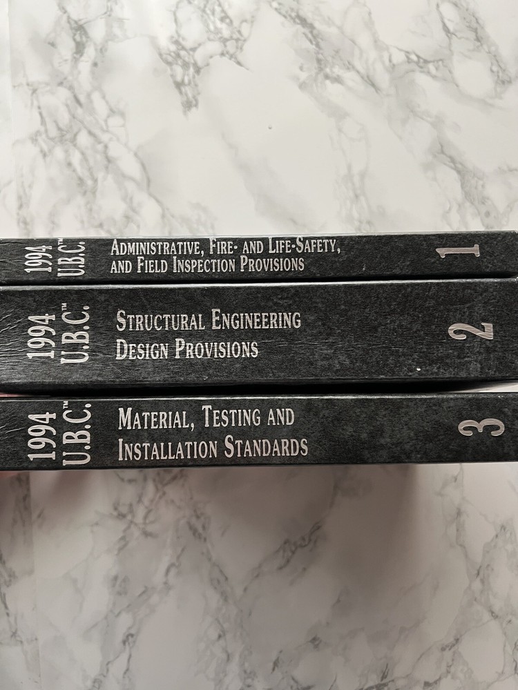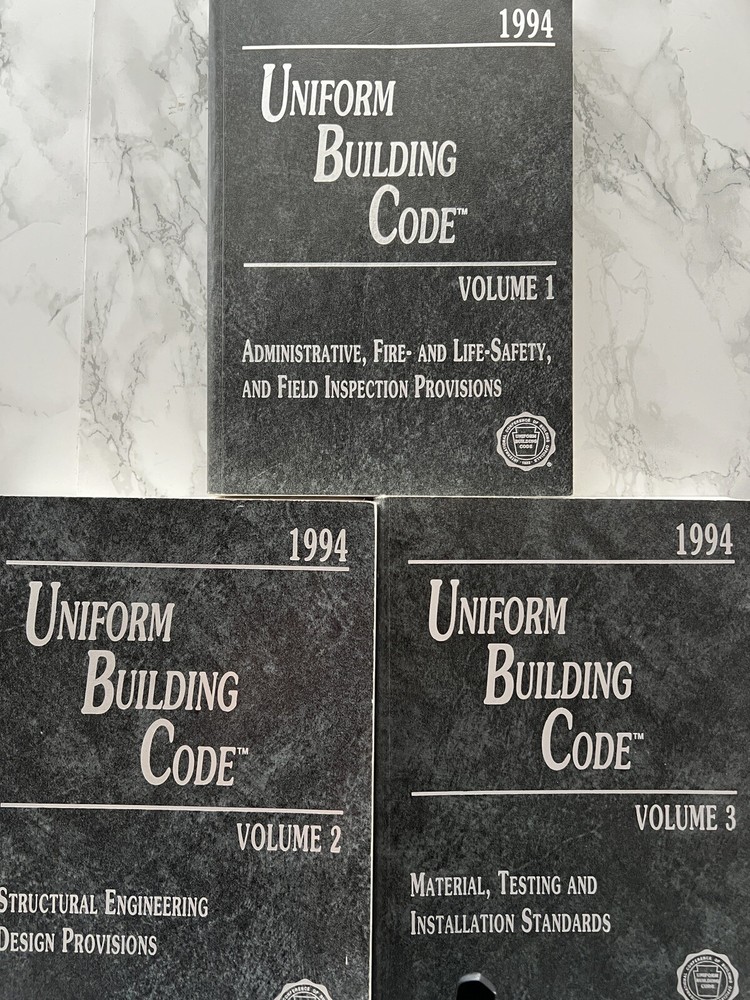 *Thank you for stopping by. This book is part of my late husband's construction and inspection reference books. I am continually listing. Please let me know if you are searching for a particular book.* 1994 Uniform Building Code – Complete 3-Volume Set Volumes 1, 2, and 3 – Published by the International Conference of Building Officials This is the complete 1994 Uniform Building Code set, featuring Volumes 1, 2, and 3. Together, these books provide a comprehensive guide to building codes, safety standards, and structural requirements from the early 1990s. Whether you're a construction professional, architect, inspector, or collector, this set is an invaluable reference tool packed with detailed illustrations, technical data, and in-depth analysis. Included Volumes: Volume 1: Administrative, Fire- and Life-Safety, and Field Inspection Provisions. Volume 2: Structural Engineering Design Provisions. Volume 3: Materials and Testing Standards. Key Features: Publisher: International Conference of Building Officials Copyright: 1994 Pages (Total): Approx. 2,500 across three volumes Condition: Covers: Moderate wear from storage. Spines: Intact with light wear on the edges. Pages: Clean. No writing or highlighting. Binding: Solid for all three volumes with no loose pages. Weight: Approximately 7 pounds (combined) Why Buy This Set? Complete 3-volume series covering all aspects of the 1994 Uniform Building Code. Perfect for professionals, students, and collectors of historical building codes. Detailed and illustrated with essential reference material for structural and safety compliance. Hard-to-find full set in good condition. Shipping: Your books will be securely packed and promptly shipped to ensure they arrive in excellent condition.