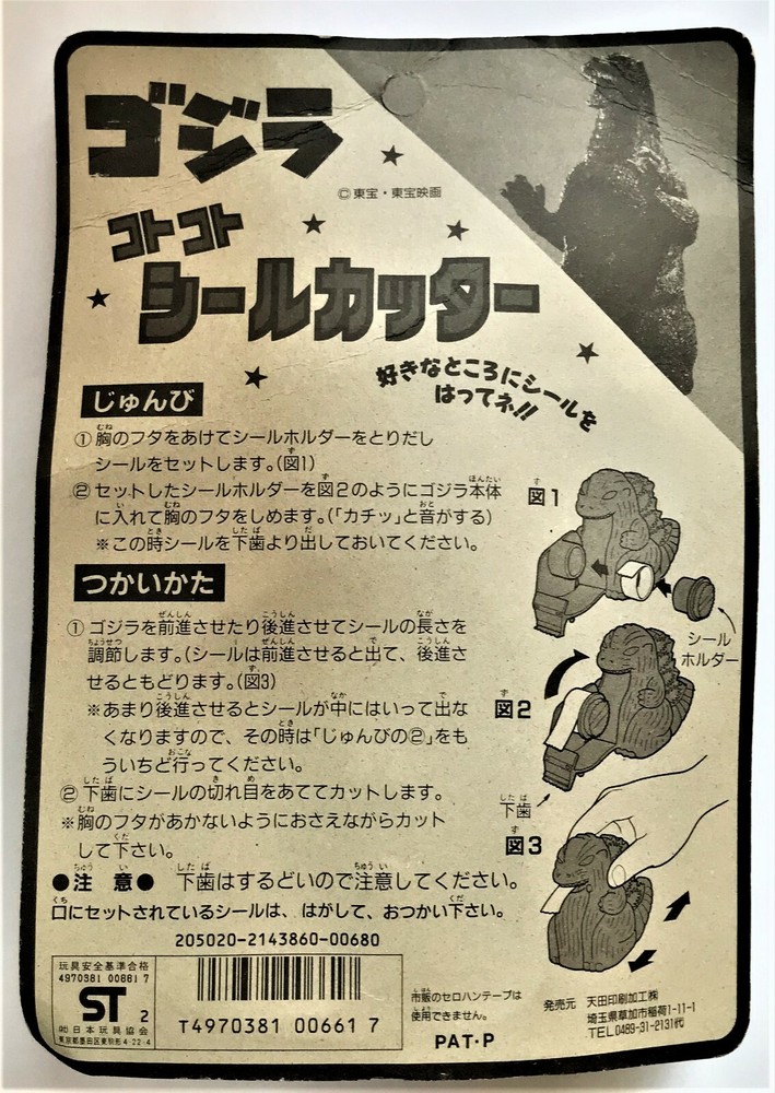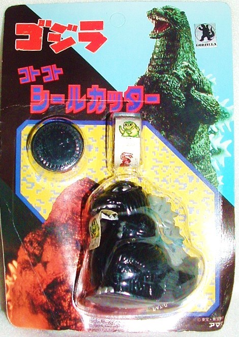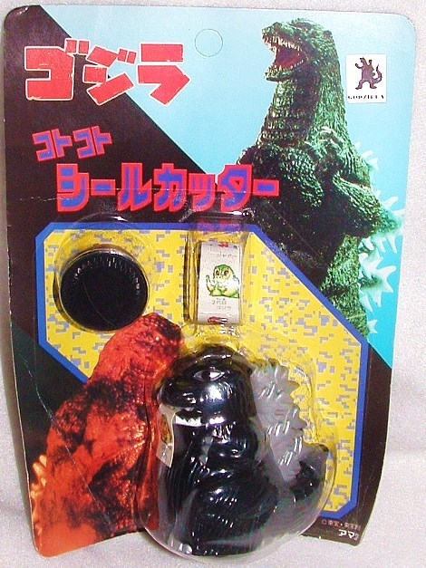 HOT FLASH! GODZILLA, TOHO MOVIE MONSTER FANS AND GODZILLA, TOHO JAPANESE MOVIE MONSTER & KAIJU COLLECTORS, CHECK THIS OUT! FROM 30 to 40 YEARS AGO COMES THIS INSANELY SUPER-COOL, INTENSE 3 INCH PLASTIC GODZILLA FIGURE STICKER DISPENSER (WITH A COMPLETE ROLL OF DOZENS OF PICTURE/STICKERS OF ALL YOUR FAMOUS GODZILLA MONSTERS AND THEIR NAMES IN JAPANESE!!!) MADE IN JAPAN, THIS AWESOME TOY IS A SUPERLATIVE SCULPT OF GODZILLA HIMSELF IN BLACK & SILVER. A TRUE ANTIQUE, WAY OVER 40 (MAYBE 50) YEARS OLD, STILL SEALED ON A GORGEOUS BACKING EXCEPTIONAL, NEAR MINT CARD & BLISTER (THIS IS NEVER OPENED OR EVEN DISPLAYED SO I MAKE NO GUARANTEE HOW WELL IT MIGHT OR MIGHT NOT FUNCTION - ONLY THAT IT IS AS NEW - SEALED!!!), IT IS THE PERFECT GIFT FOR ANY GODZILLA FAN OR COLLECTOR WHO THINKS HE or SHE HAS IT ALL! TRULY AN INSTANT CLASSIC AND UNIQUE. BEAUTIFULLY MODELED & SCULPTED. TRULY UNIQUE!!!!!! THE PHOTO DOESN'T COME CLOSE TO SHOWING HOW COOL IT IS! IT IS BRAND NEW, MINT ON CARD . THIS IS A COLLECTION NECESSITY AND WILL OCCUPY A SPECIAL PLACE IN ANY GODZILLA COLLECTION. YIPPEEE! (I HAVE MANY OTHER GODZILLA AND FRIENDS VINYLS, DIE-CASTS AND MORE THAT ARE AWESOME, UP ON AUCTION TOO - LOOK FOR THEM - if you win others you can combine them for shipping and save $ !). OFFERED HERE AT A REALLY LOW OPENING PRICE!!! BUYER PAYS SHIPPING, HANDLING AND INSURANCE WITH PAYPAL OR, EMAIL ME BEFORE BUYING FOR OTHER PAYMENT METHOD OPTIONS! BUYER MUST SEND PAYMENT WITHIN 2 DAYS. THANKS FOR LOOKING! VERY RARE!!!!!!!!!!!!!!!!!!!!!!!!!!!!!!!!!!!!!!!!!!!!! THIS IS MY LAST ONE!!!!!!!!!!!!!!!!!!!!!!!!!!!!!!!!!!!!!! THIS IS MY LAST ONE!!!!!!!!!!!