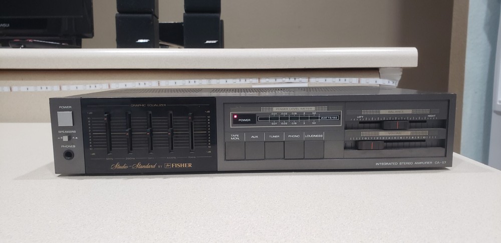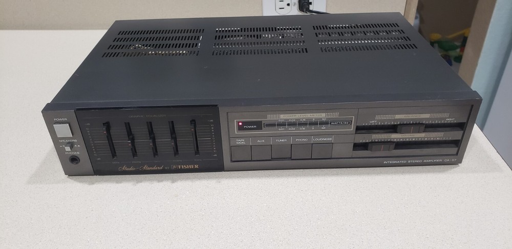 This is a vintage amplifier by Fisher with a built-in Graphic Equalizer. It is in great cosmetic condition. However, during testing sound only came from one speaker. For that reason, it is being sold for parts or repair. Sale is for the Amplifier only. The Tuner and other accessories shown in the picture were used for testing and are not included in this sale.