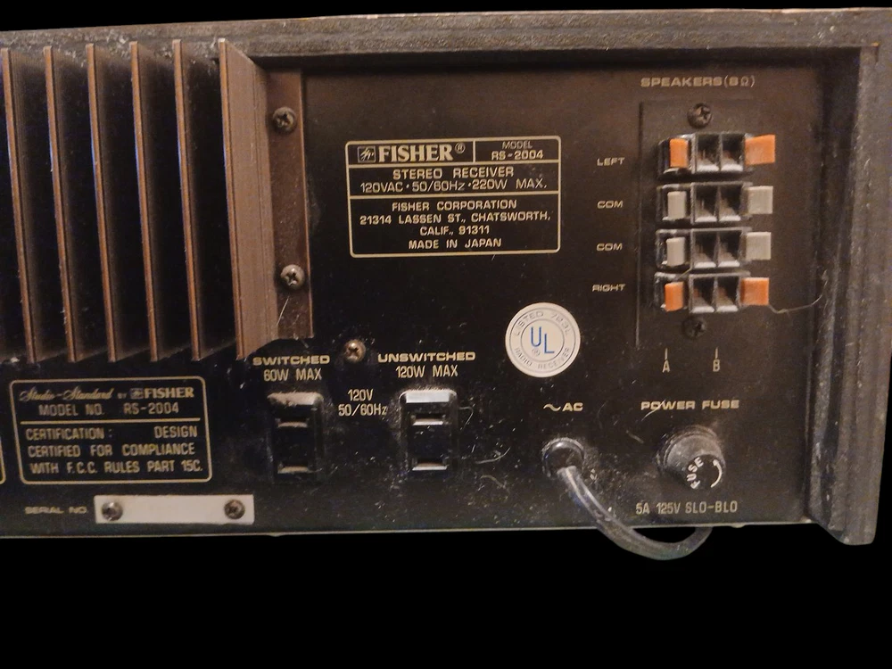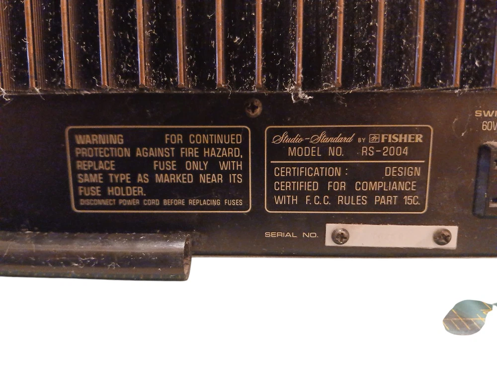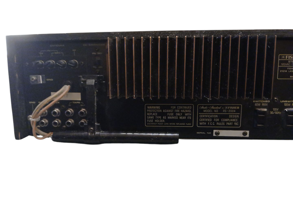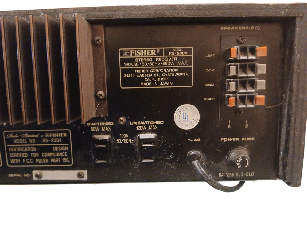 VINTAGE - FISHER - STEREO RECEIVER - RS-2004 - WORKS - 120VAC.50/60Hz.220W MAX.- 19" X 6" X 13" FISHER CORPORATION 21314 LASSEN ST. CHATSWORTH CALIF. 91311 MADE IN JAPAN STUDIO STANDARD