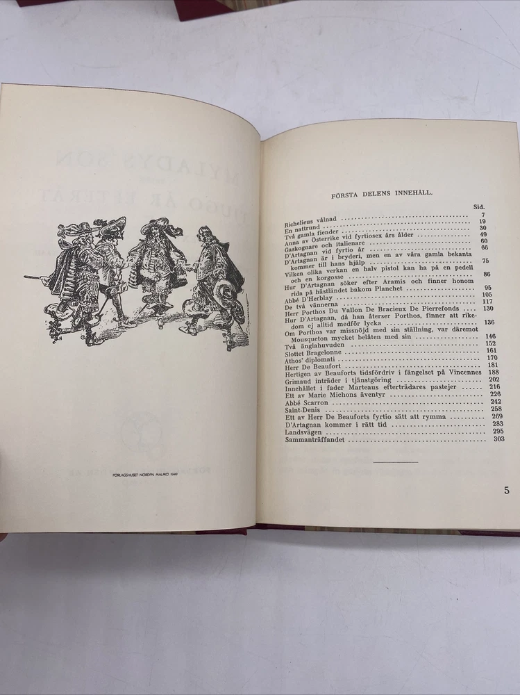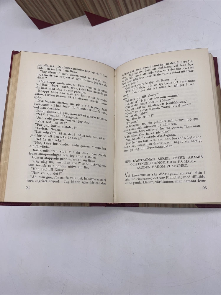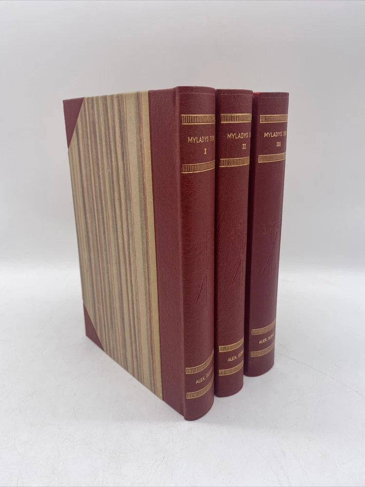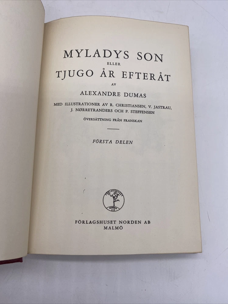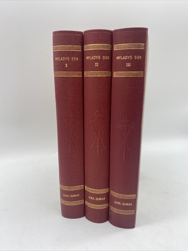 VINTAGE LEATHER 3 BOOK SET ALEXANDRE DUMAS SWEDISH LANGUAGE MYLADYS SON 1945. SEE OUR OTHER LISTINGS FOR OTHER VINTAGE AND ANTIQUE BOOKS. Please see all photos as they are considered part of the description. We ship to the lower 48 states of USA only. Thank you for your interest.