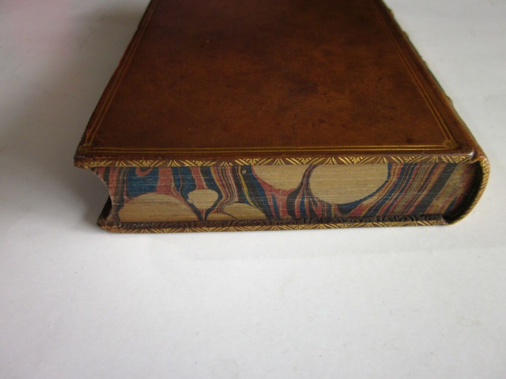 Here is volumes 3 &4 (bound together as one) of a book set called "Marriage Ceremonies and Intercourse of the Sexes in all Nations; To which is added "The New Art of Love" ". It is written by John Joseph Stockdale (1770-1847) under the pen name Thomas Little and published in London in 1824. Volume 3 contains part of the world survey of marriage customs (293 pages) and volume 4 the essay "The New Art of Love"(184 pages). He published another similar book under the name "T. Bell". He had litigations over the accusation that he had published "indecent books". The original 4 volume set had as many as 12 plates, sometimes called anatomical and sometimes bound separately. This book of volumes 3 and 4 has only 2 plates opposite the 2 title pages. It doesn't look like any plates have been removed. Not ex-lib and no internal markings. The condition of this book is outstanding. Only a very slight bump to the upper corner and some slight foxing--discoloration to the plates and title pages. I have read this book called "erotica", but it might also be called anthropological. This book for sale here measures 4.25 in. X 6.5 in. and the calf binding looks original. This is a very scarce book.