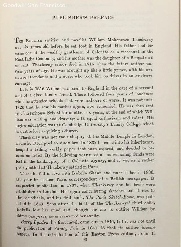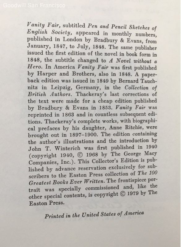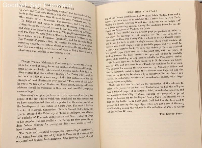 I am pleased to report that the seller goodwillsanfrancisco provided my winnings of the Easton Press collected version of the Ultimate Hitchhiker's Guide to the Galaxy in a very pristine condition, which is hard to ensure in auctions from out of state second hand stores. They were quick to ship it out, packaged it well, and as stated provided it to me in the condition it appeared to be photographed in and as described! So, it was an excellent transaction for both the great value and the service!