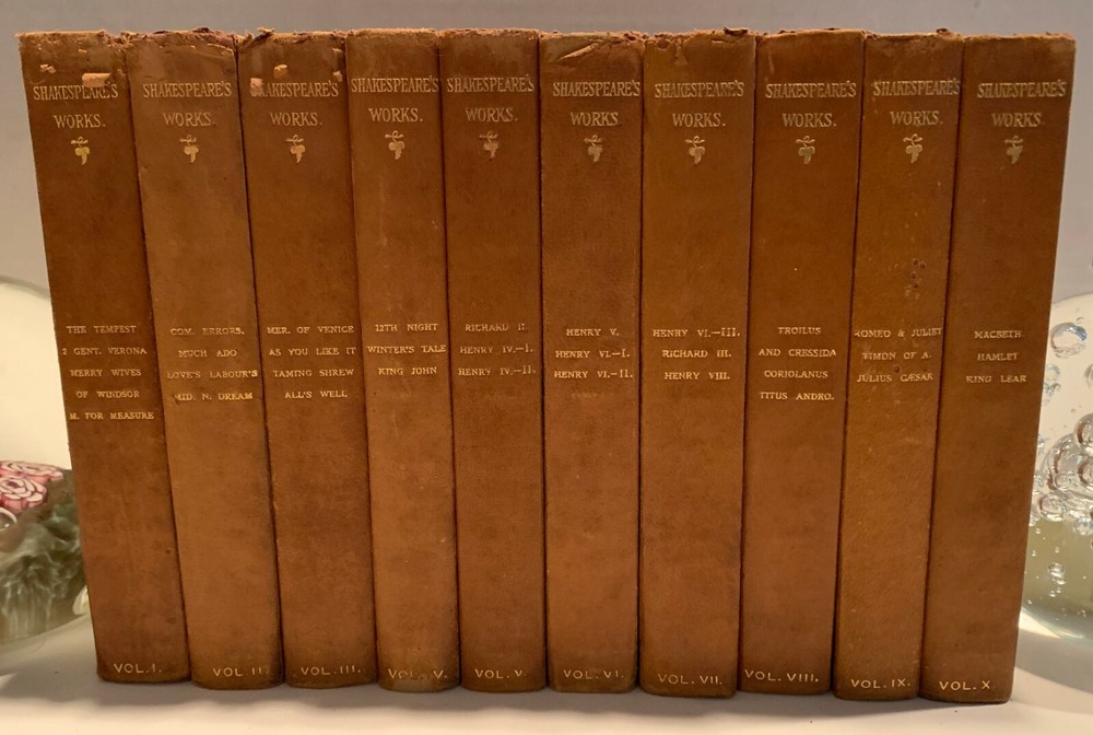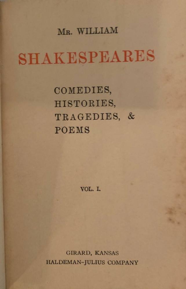 This is a very rare 10-volume leather-bound set of Shakespeare's Works by Haldeman-Julius. The books are in excellent condition and have been well-preserved over time. They contain all of Shakespeare's plays and poems and are a must-have for any Shakespeare enthusiast. The set is made even more unique by the fact that it was published by Haldeman-Julius, a prolific publisher known for their small and affordable books. The books would make a great addition to any collection and are sure to be a conversation starter.