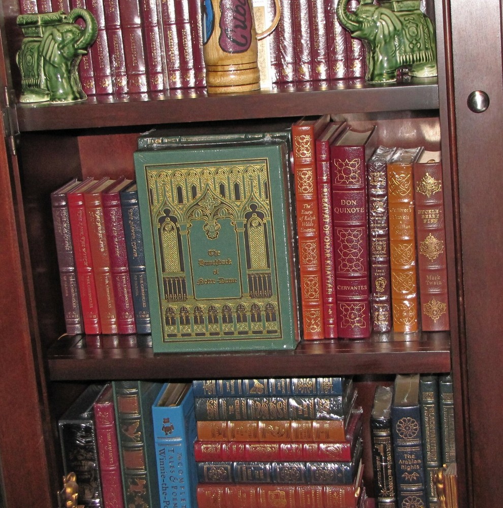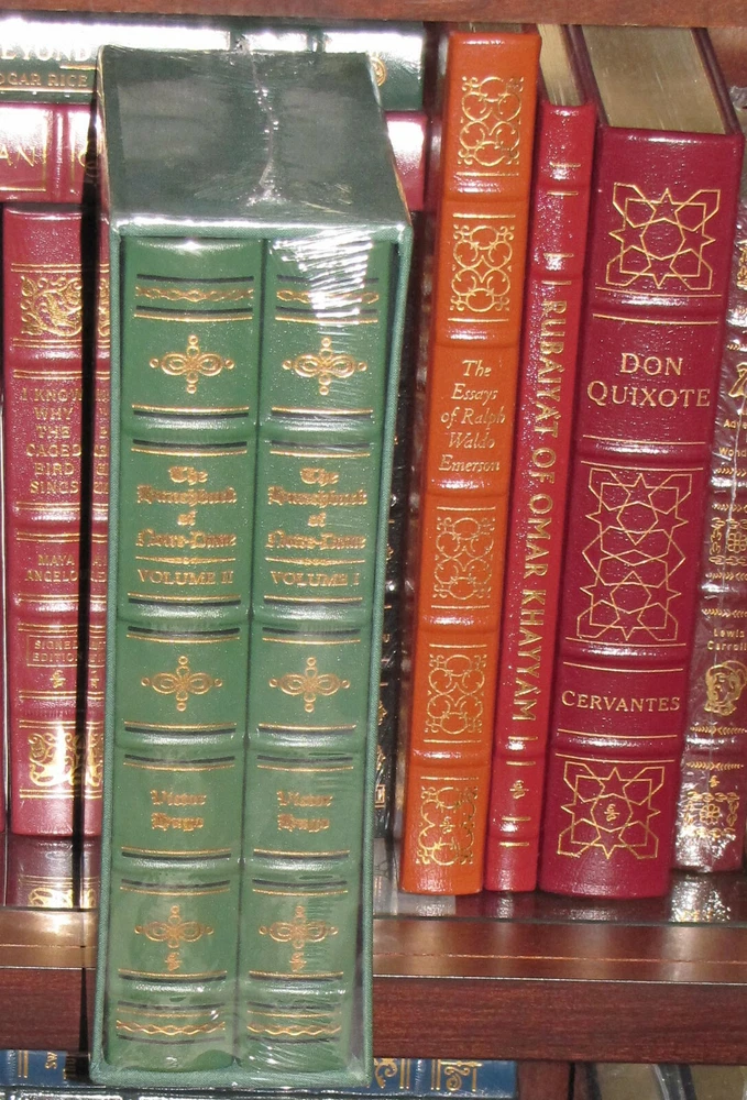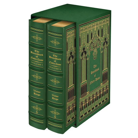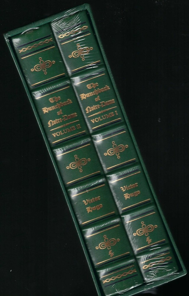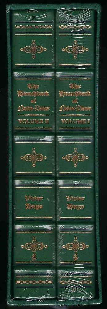 The Hunchback of Notre Dame recreating the historic 1888 illustrated English-Language edition limited to 800 hand-numbered sets bound with imported cowhide leather from Italy and printed on Utopia ivory matte text paper by Appleton Papers an exclusive 2- volume leather- bound slipcased commemorative edition offered to only a few of EP's most discerning customers here is an opportunity to own a superb re-creation of that deluxe 1888 illustrated English-Language edition of Hugo's masterpiece: the hunchback of notre-dame an exclusive two volume leather bound commemorative edition set strictly to exactly 800 hand-numbered sets Includes a fabric-covered slipcase for storage and display own this dazzling two volume limited set not found in stores THE HUNCHBACK OF NOTRE-DAME 800 HAND-NUMBERED GRAND LEATHER BOUND EXCLUSIVE TWO VOLUME EDITION re-creating the historic 1888 illustrated English language edition receive the two volume oversized illustrated edition of 1888 in one shipment Victor Hugo's THE HUNCHBACK OF NOTRE DAME Victor Hugo's Immortal Story of Compassion and Salvation...Re-Creating The Historic 1888 Illustrated English Language Edition. Victor Hugo's moving story of the deformed bell-ringer Quasimodo, the bewitching Gypsy Esmeralda, and the tortured Archdeacon of Notre Dame whose forbidden love drives him to the brink of madness stands as one of literature's greatest masterpieces. This magnificent slipcased set reprints the stunning two-volume, oversized, illustrated edition of 1888. Limited to 800 hand-numbered sets. Actual size of books are 7 1/2" x 10 1/2" CUSTOM DESIGNED FOR STORING COLLECTIBLE DELUXE SUPER SIZED EDITION BINDING:SUPPLE PREMIUM LEATHER RAISED HUBBS AND 22KT GOLD ACCENTS GILDED PAGE ENDS AND HEAVY DUTY BINDING BOARDS ENHANCE THE BOOK'S BEAUTY AND DURABILITY SHIPS FREE WITH TRACKING GUARANTEED HIGH END ORIGINAL PRODUCT NOT FOUND IN ANY STORE Features Found Only In The World's Finest Books Genuine Leather Binding from specially tanned hides of superb quality 22KT GOLD ACCENTS DEEPLY INLAID ON THE SPINE ADD DISTINCTIVE CLASSIC BEAUTY Acid-Neutral Pages that are sewn, not just glued, and inspected at every stage Moire Fabric Endsheets for beauty and strength Bound In America by skilled craftsmen the binding is of supple premium leather with raised "hubs" and 22kt gold accents moire fabric endsheets gilded page ends heavy duty binding boards-enhance book's quality and durability smyth sewn pages-sewn into the binding with sturdy, pliable thread-now a rare traditional technique that allow the book to open flat acid-neutral paper that will not turn brittle and crumble with age conversation starters by guests!! ! ! ! ! ! ships with tracking tamper proof packaging will be used package may or may not be water proof-depends on cost of shipping ETA sent to ebay mail when available photo of package sent with ship confirmation email DUE TO THE COST OF THIS ITEM IT WILL BE MAILED WITH ADULT SIGNATURE REQUEST AND INSURANCE NO EXCEPTIONS.