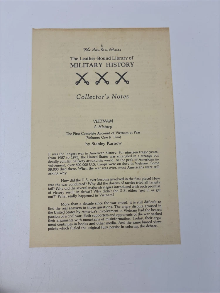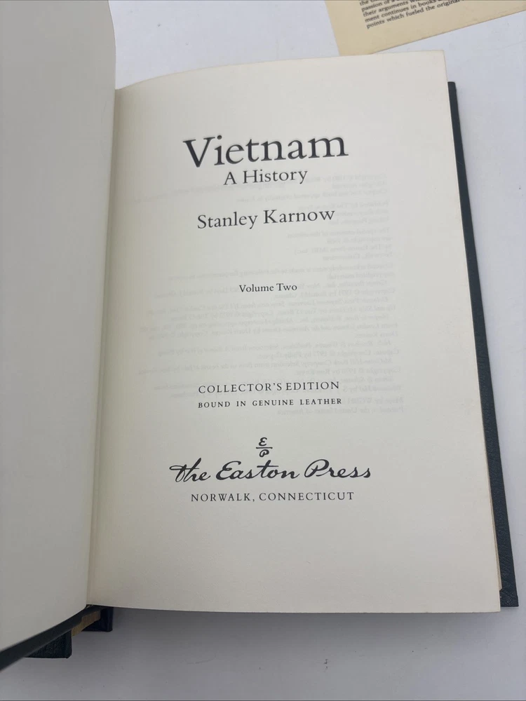 Vietnam A History Volume One & Two Set by Stanley Karnow - Easton Press Military History This set is in excellent condition as seen in photos. There is no marking in the book. Check out my other Easton Press listings.