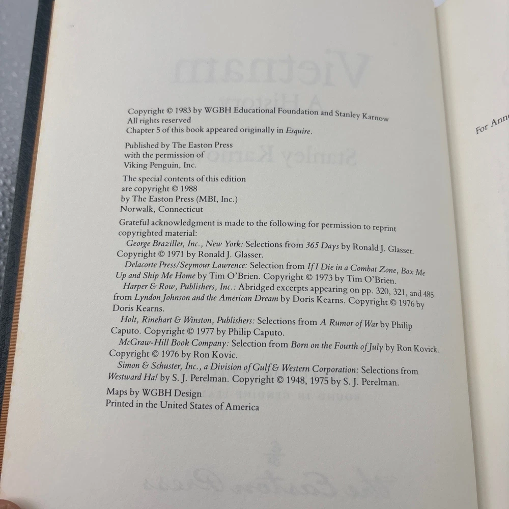 Vietnam A History Volume One & Two Set by Stanley Karnow - Easton Press Military History This set is in excellent condition as seen in photos. There is no marking in the book. Check out my other Easto...