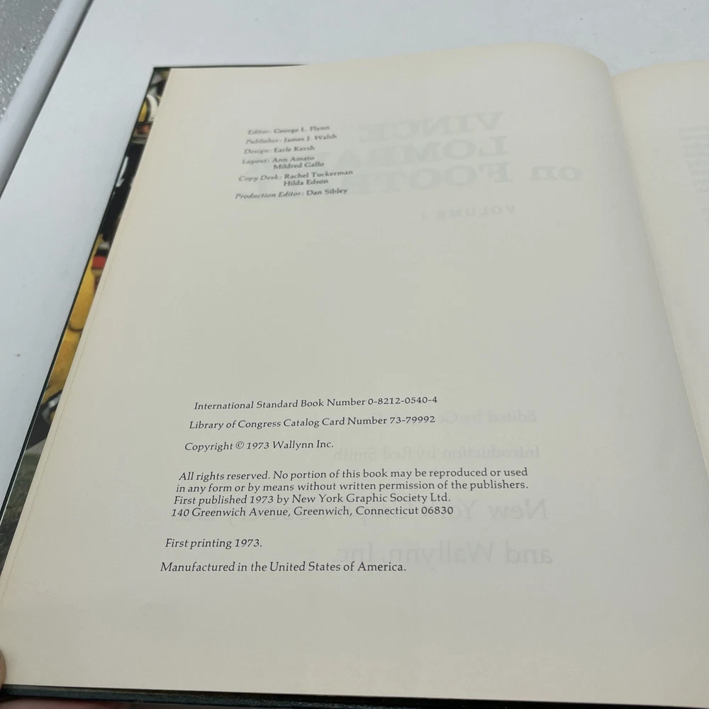Dive into the world of football with the two-volume set of "Vince Lombardi on Football." This first edition, published in 1973 by New York Graphic Society, offers an insightful look at the sport through the eyes of the legendary coach. With many color photos and a faux leather binding, these hardcover books provide a durable and visually appealing reading experience. The set is aimed at an adult audience and is perfect for those interested in sports and recreation, specifically football. The books are in English and discuss various aspects of the game, making them a valuable addition to any football fan's collection. Don't miss out on this opportunity to learn from one of the greatest coaches in football history.