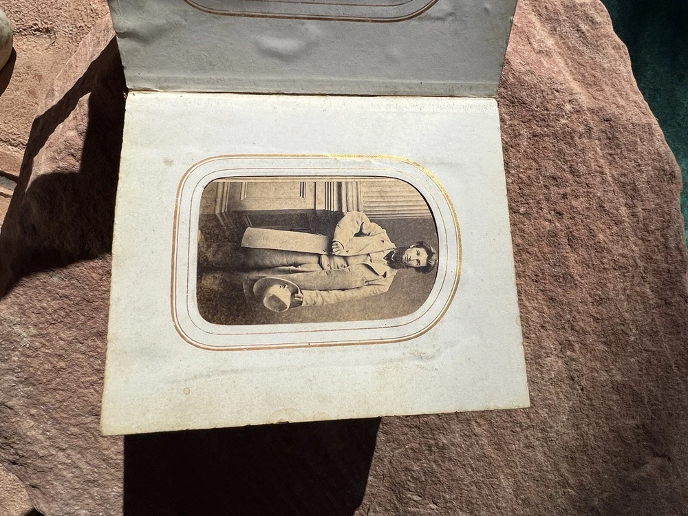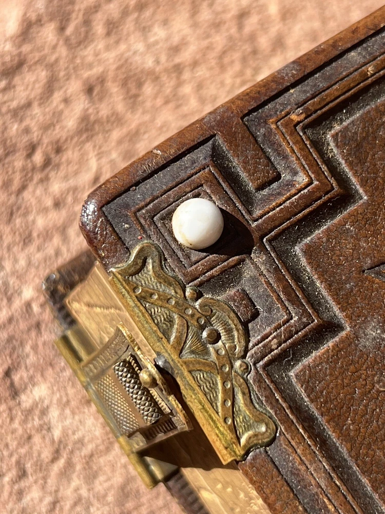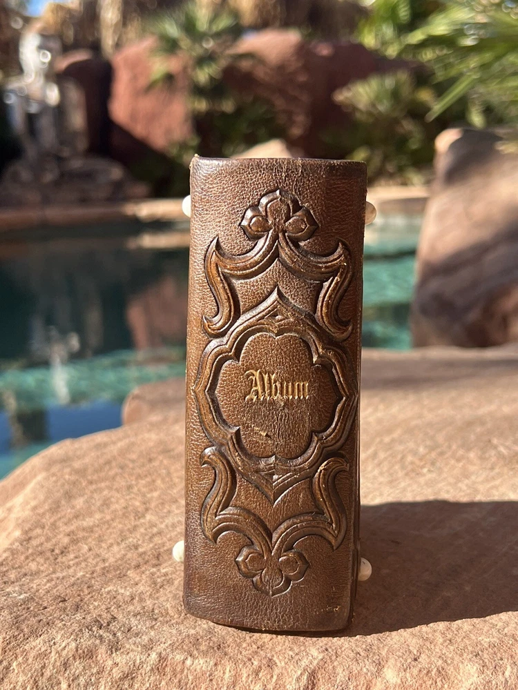 Vintage 1890's Leather Bound Book of Photographs Stones Latch Looks like original but we have no idea since we inherited it. In my opinion the album in a very good condition for its age. Overall the case has only minor flaws. I think only one photo is missing. We have no experiences with items like this in general. Since we already sold some through eBay and everyone was happy we believe this are original items. Please take a look at the photos in detail before you buy. Feel free to ask any questions you may have. Thank you