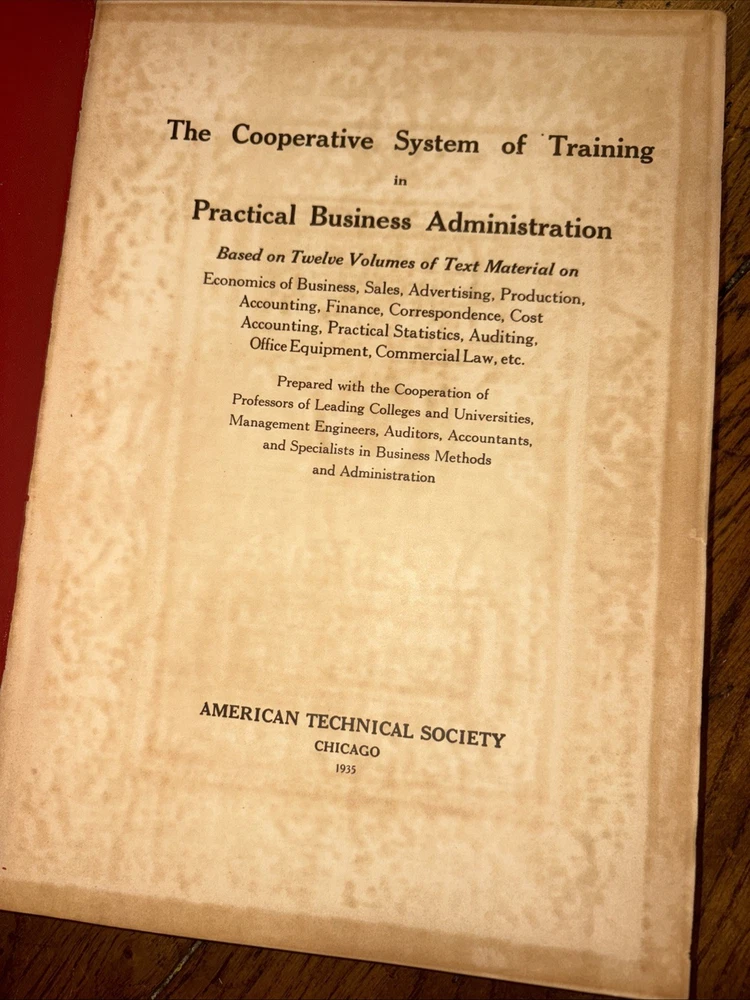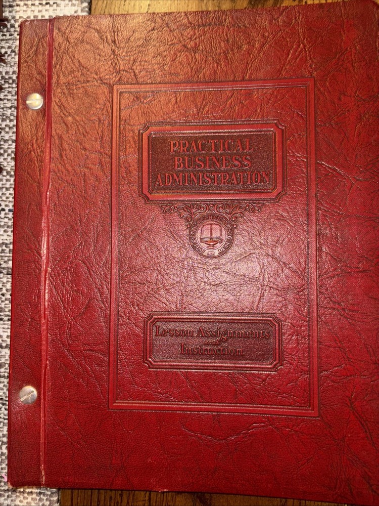 The Vintage 1935 Practical Business Administration 11 Volume Set Books with Leather Cover is a rare and valuable collection of nonfiction management books from the 1930s. Published by the American Technical Society, this set offers insights into the business world with a focus on administration, sales, and related topics. The leather-bound format adds a touch of elegance to these timeless works, making it a must-have for enthusiasts of vintage literature and business history. Set of 12 volumes plus a rare “lesson assignments and instruction” book.