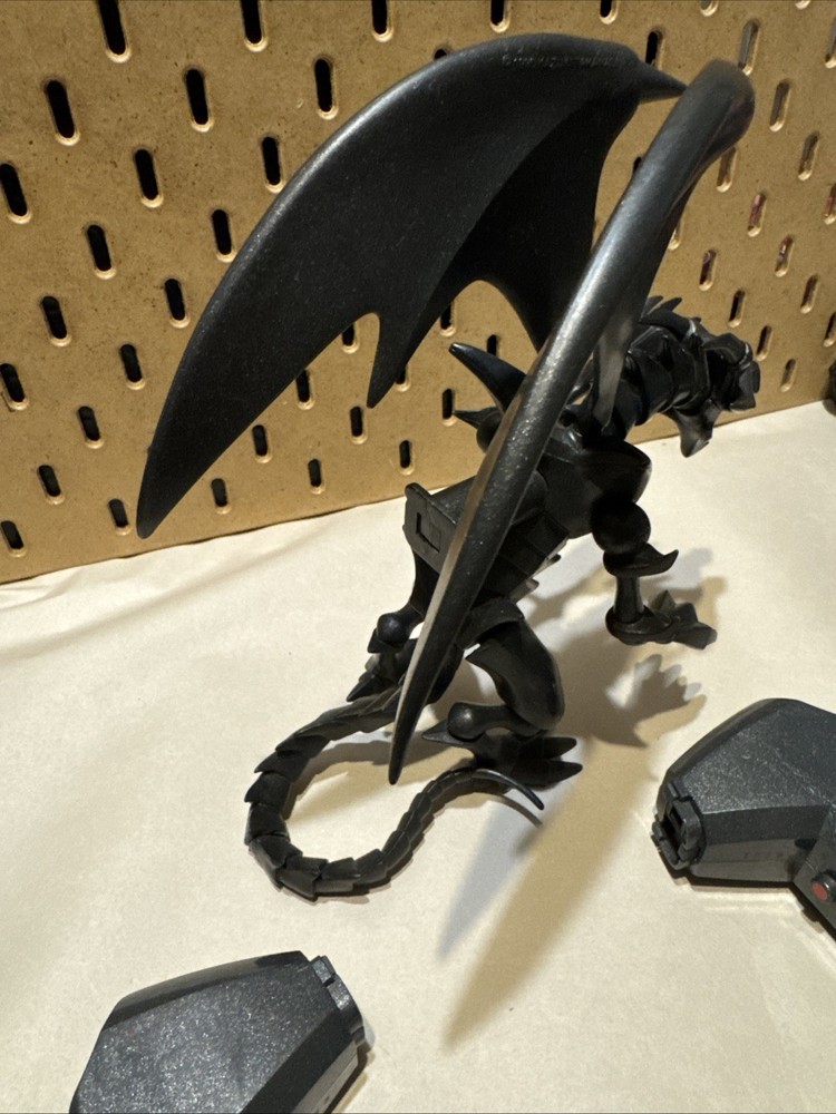 Please see photos for best description. One remote comes with batteries. The other does not. There is no missile/fire. See photo of tail. It is not noticeable, but it appears that the previous owner used a bit of glue to keep the tail from falling off. However, it does stay on its own for the most part just fine.