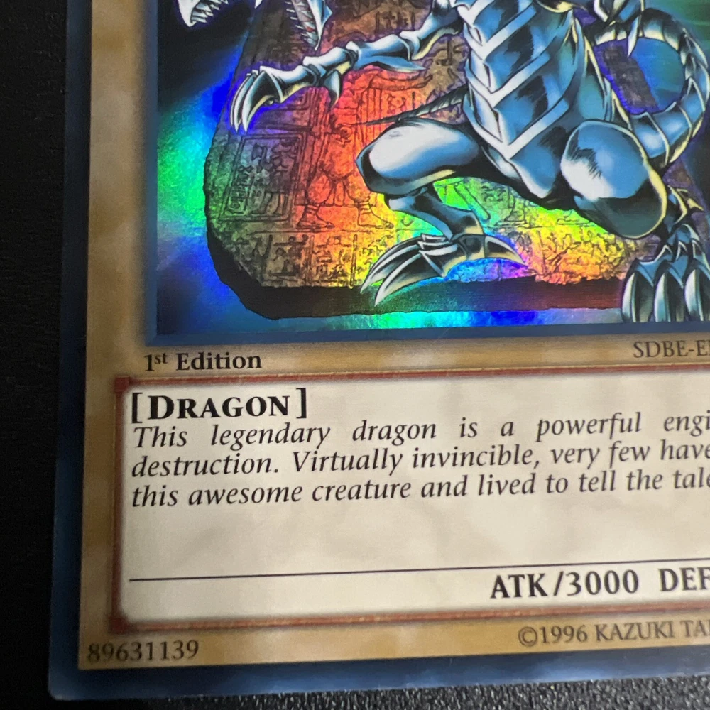 Elevate your Yu-Gi-Oh! TCG collection with the iconic Blue-Eyes White Dragon card, a staple for both players and collectors alike. With its striking holographic finish, this card stands out in any deck or display. The 1996 1st Edition SDBE-EN001 printing marks it as a vintage treasure, perfect for those who appreciate the game's history. Best offer wanted!! The listing price is just a number. Your offer is most important so please do not hesitate to give me your best offer. Thank you for your interest. God bless!