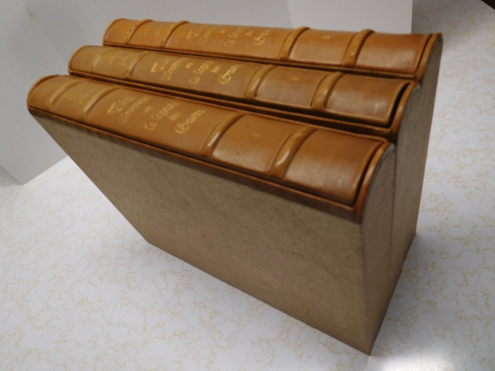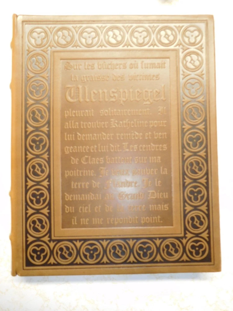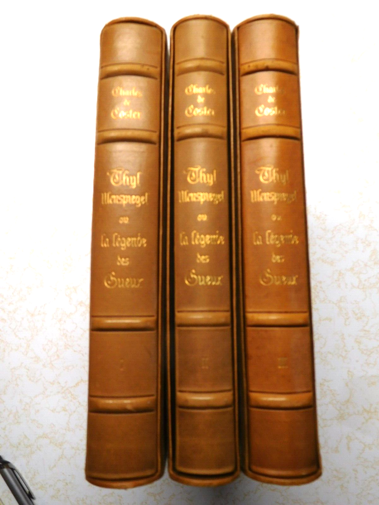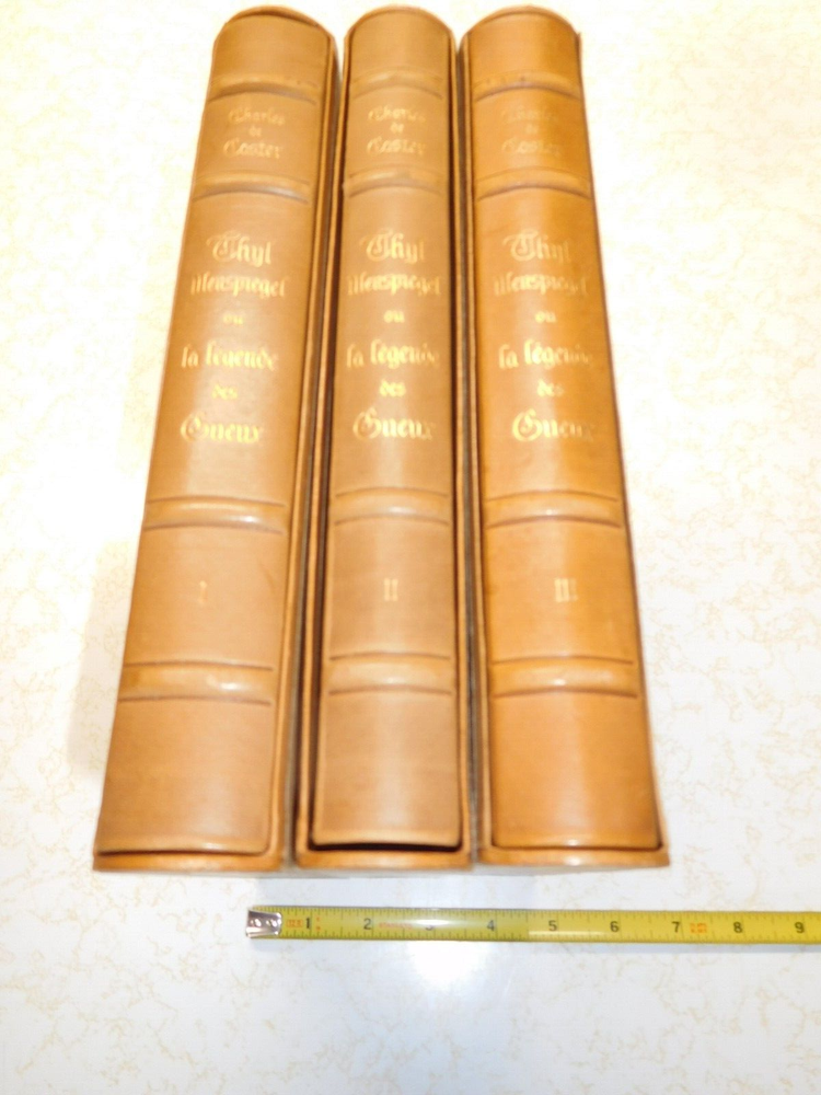 Experience the beauty of French literature with this vintage 3 volume set of "The Legend of the Beggars" or Ulenspiegel. The finely leather bound books are a true masterpiece and come boxed for optimal protection. This facsimile edition by latin Publishing Union, Paris, is a must-have for any book collector or lover of fiction. The set covers the fascinating topic of sets and is a great addition to any antiquarian and collectible book collection. The books are in excellent condition, ready to be added to your personal library. Don't miss out on the opportunity to own this timeless classic. Set measures 4-3/4" x 10" x 7-3/4".
