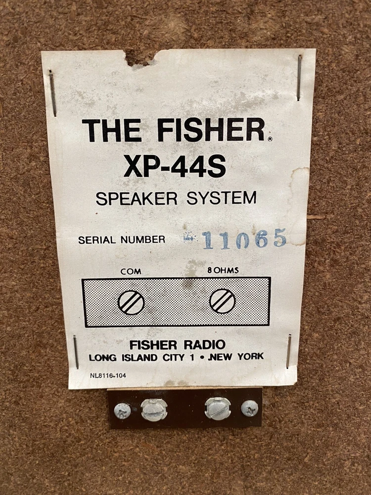 Vintage 60s The Fisher Model XP-44S Speaker System Fisher Radio TESTED Tested Working: This single Fisher XP-44S worked great when hooked up to my sound system. I ran it for a half hour to just to make sure it wasn't going to have any issues and I was impressed with how good it sounded. Physical Condition: Unit is in great physical condition, with some minor lifting of the veneer on the back end and light scratching on the bottom face of the unit, but nothing too bad, and no major damage to the unit (see photos). I didn't fully take off the grill for fear of damaging it, but I pealed back the top just to glace at the drivers, and they looked great. For anyone who is just generally interested in learning about the history of The Fisher's XP series there is a great post about it on the Audio Karma forums: https://audiokarma.org/forums/index.php?threads/xp-series-speakers-1959-1973.479002/ NO original packaging, manuals, or other accessories included Feel free to message with any questions related to this listing. Units sold have a 30 day money back return policy, (buyer pays return shipping) If you have any questions or issues with items purchased please contact us immediately before starting a return. We only reply to direct messages and ship packages during our business hours of Monday-Friday 9AM-5PM PST.
