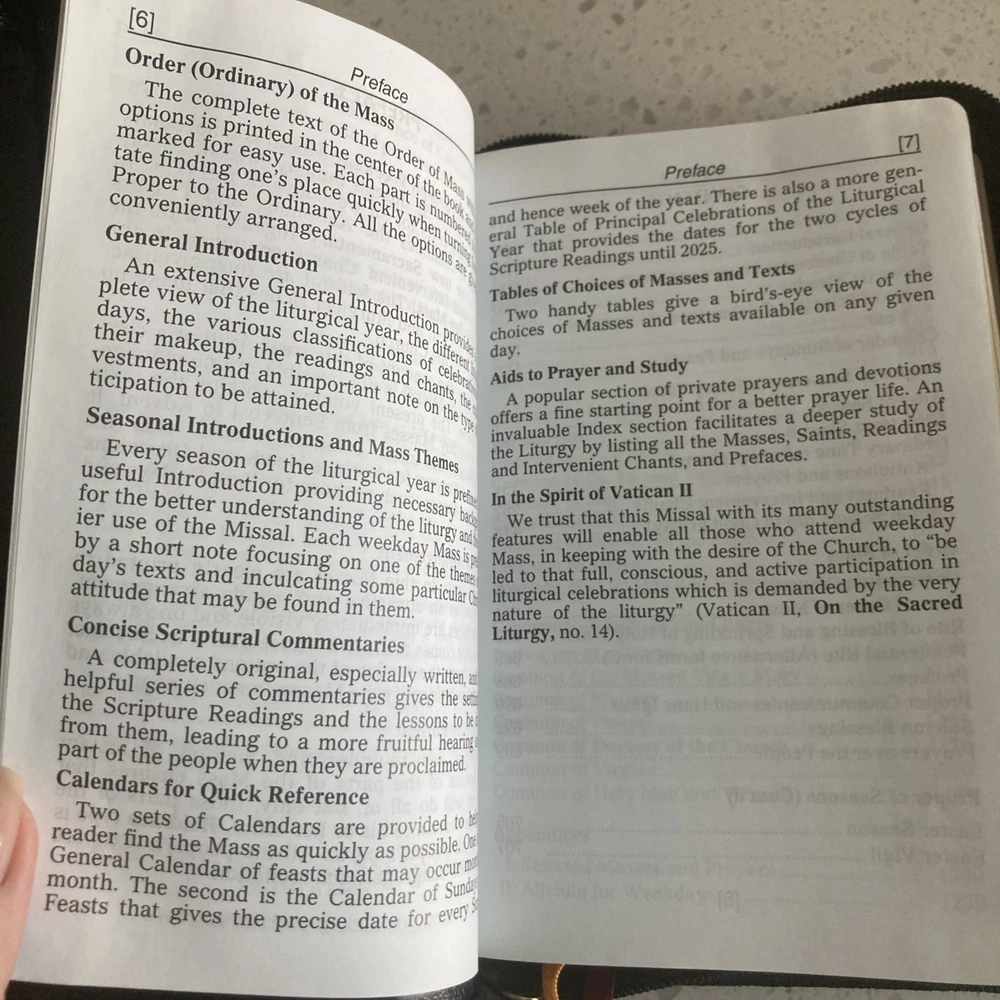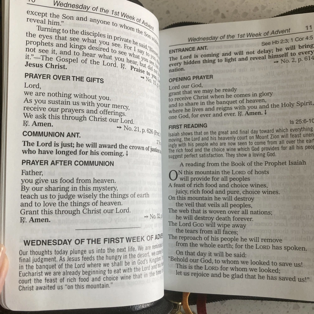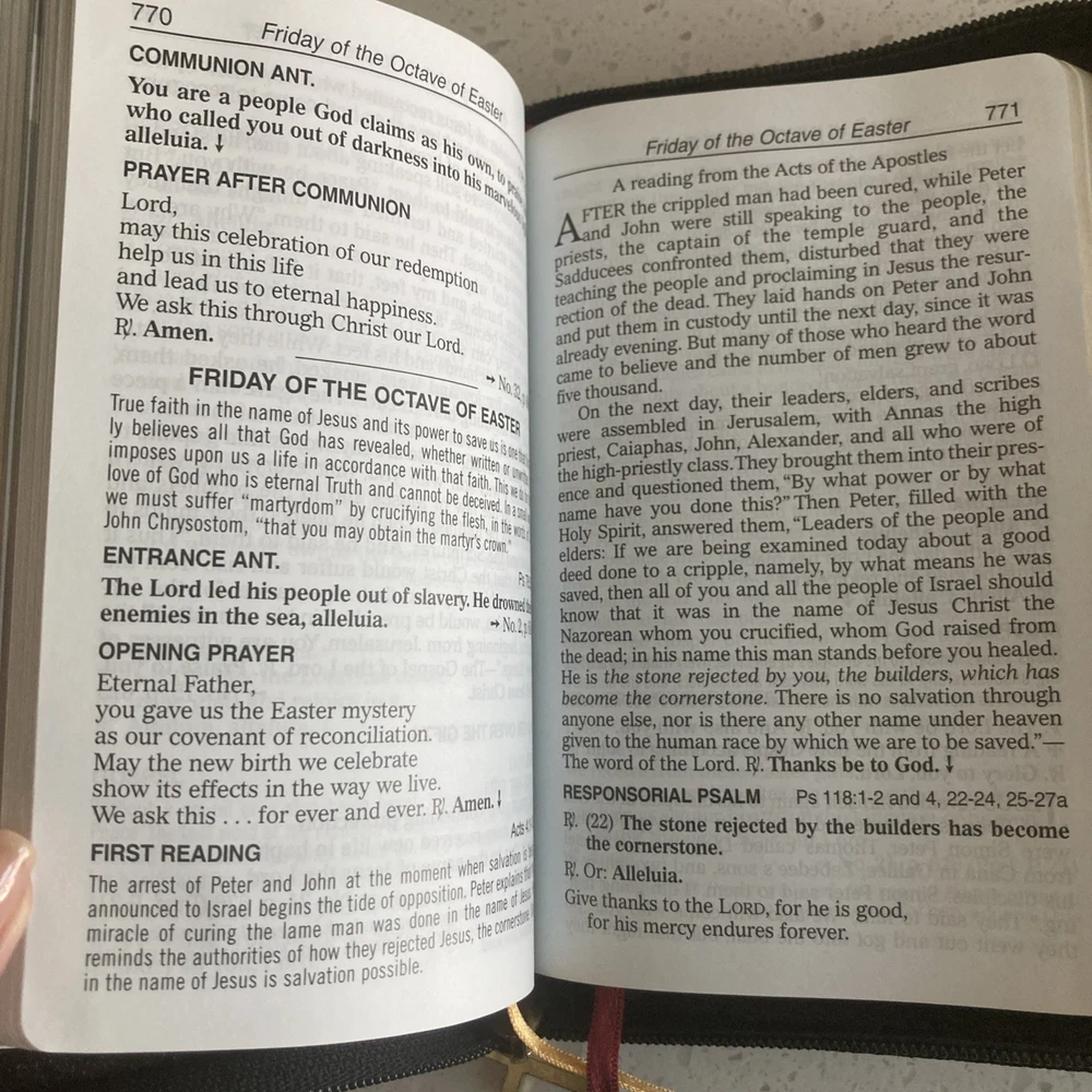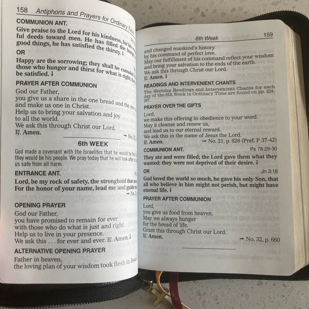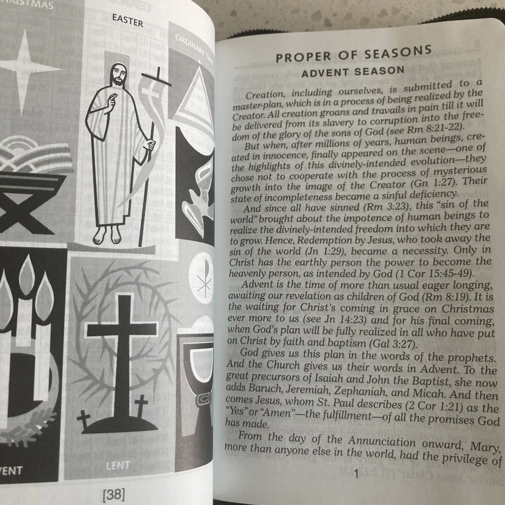 This missal is a beautiful blend of tradition and practicality. The leather-bound cover feels sturdy, and the cross zipper adds a lovely touch. Inside, the 1338 pages are packed with meaningful prayers and readings, perfect for deepening your faith journey. The two ribbons make it easy to mark your place, and the vintage style gives it a timeless feel. Whether for personal devotion or liturgical use, it’s a wonderful companion from Advent to Pentecost. Highly recommended for anyone seeking a richer spiritual experience!