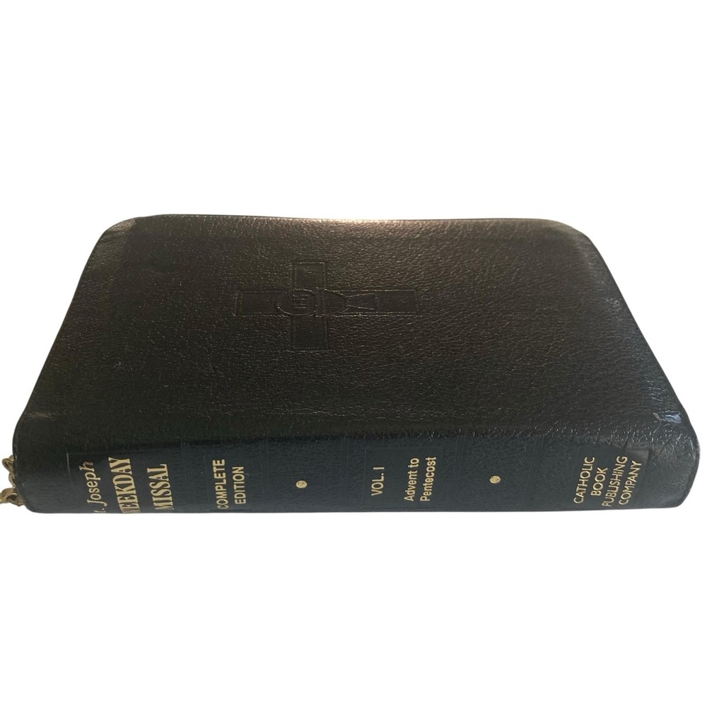 Dive into the spiritual richness of the Vintage Advent to Pentecost Weekday Missal, Volume 1, a complete edition that captures the essence of Christian devotion. Published by Catholic Book Publishing Corporation in 2006, this leather-bound missal is a treasure trove of historical significance, intended for both young adults and adults seeking a deeper understanding of their faith. With 1338 pages of insightful content, it's designed with practicality in mind, featuring two page ribbons and a charming cross zipper pull that adds a personal touch. The missal is presented in English, preserving the original language of the era, and is a testament to the spiritual education of its time.