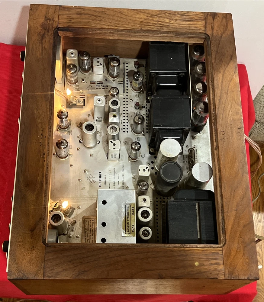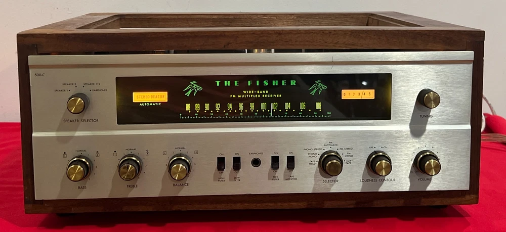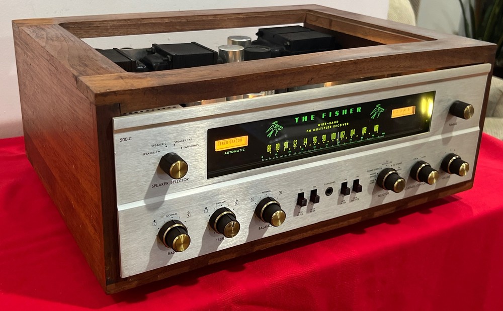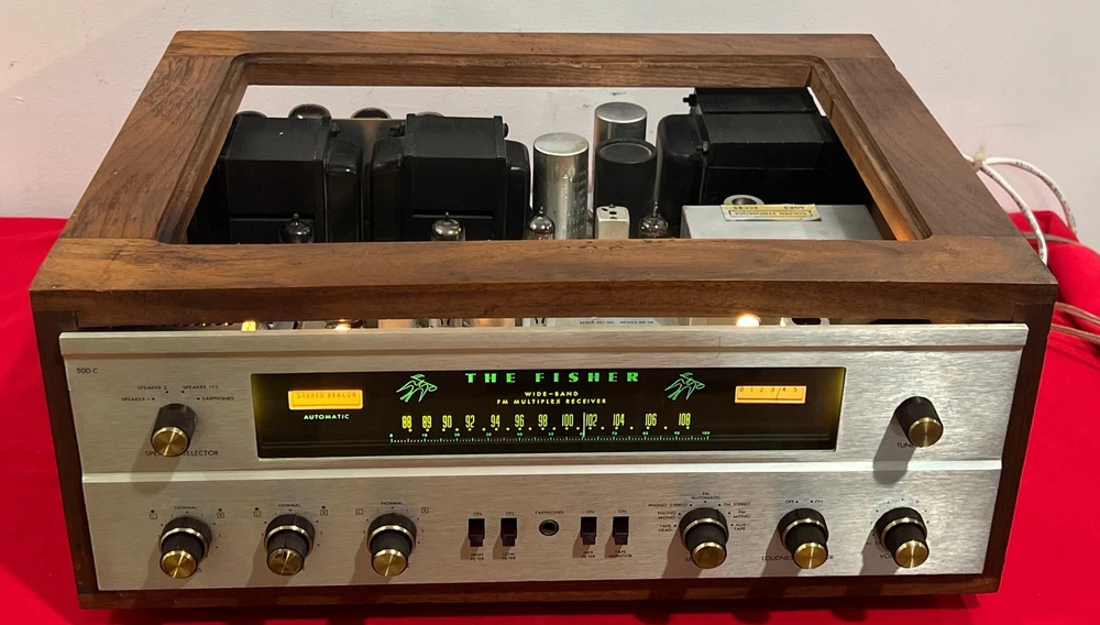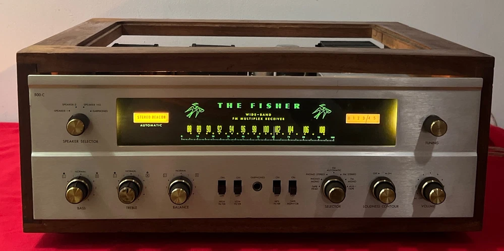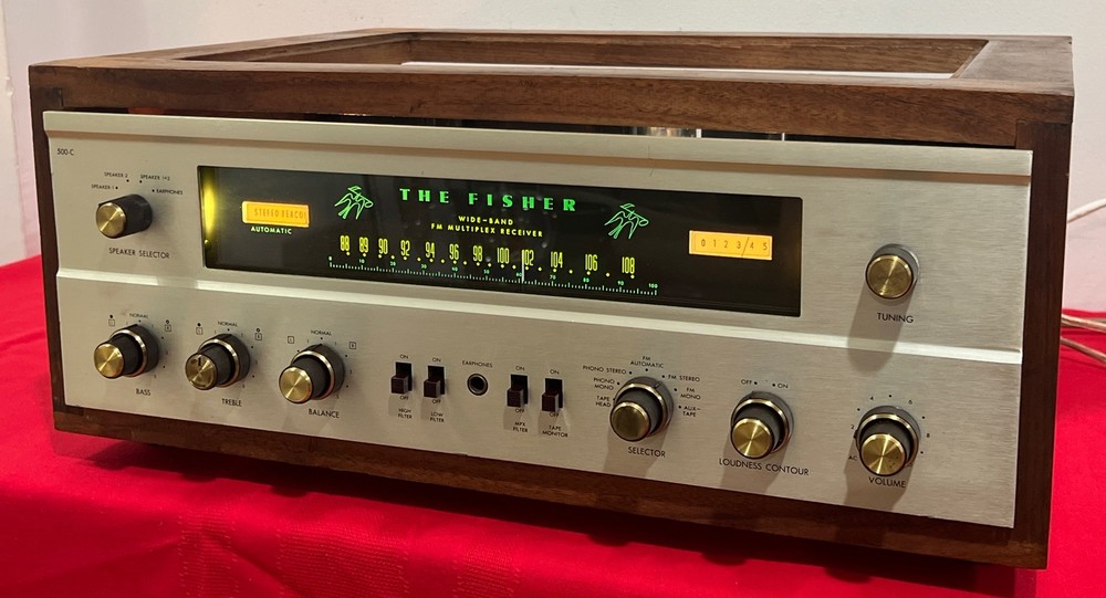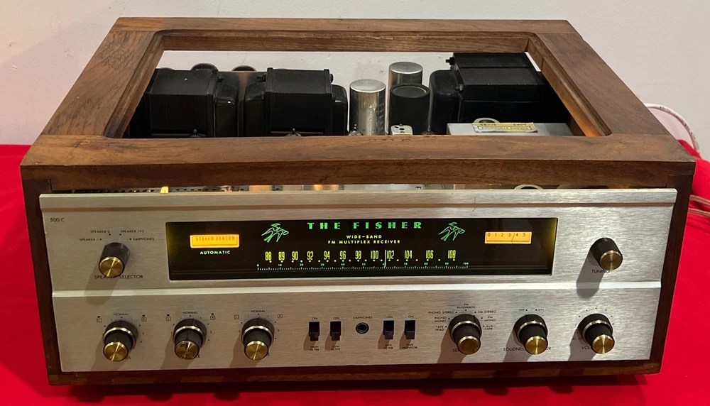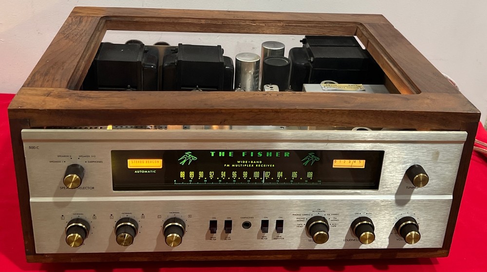 Vintage The Fisher 500C FM Stereo Receiver With Custom Made Cabinet selling tested to be in working condition , being sold in vintage used condition with signs of wear due to age please look at all pictures for signs of wear ships with fedex ground properly pack with signature required final sale no return no refund