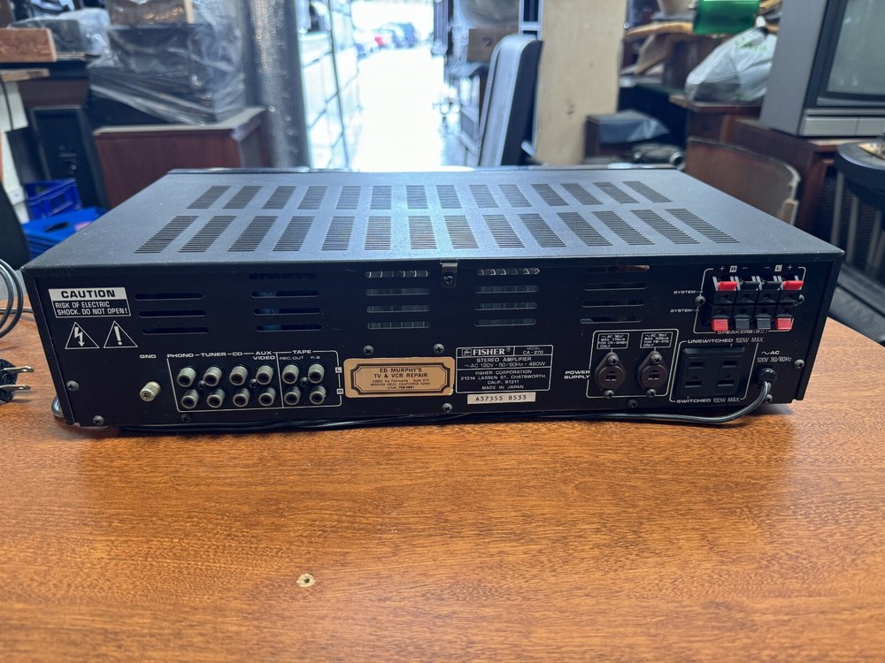 This is a Fisher CA-270 stereo integrated amplifier. It was acquired and serviced by our shop and kept in storage ever since. Light scuffs from past use, but in phenomenal working condition. Local pickup in Laguna Hills. We cannot offer warranty, but you're free to test in person. Contact us if you have any questions. Any unit listed may have sold in-person, CONTACT US BEFORE PURCHASING!