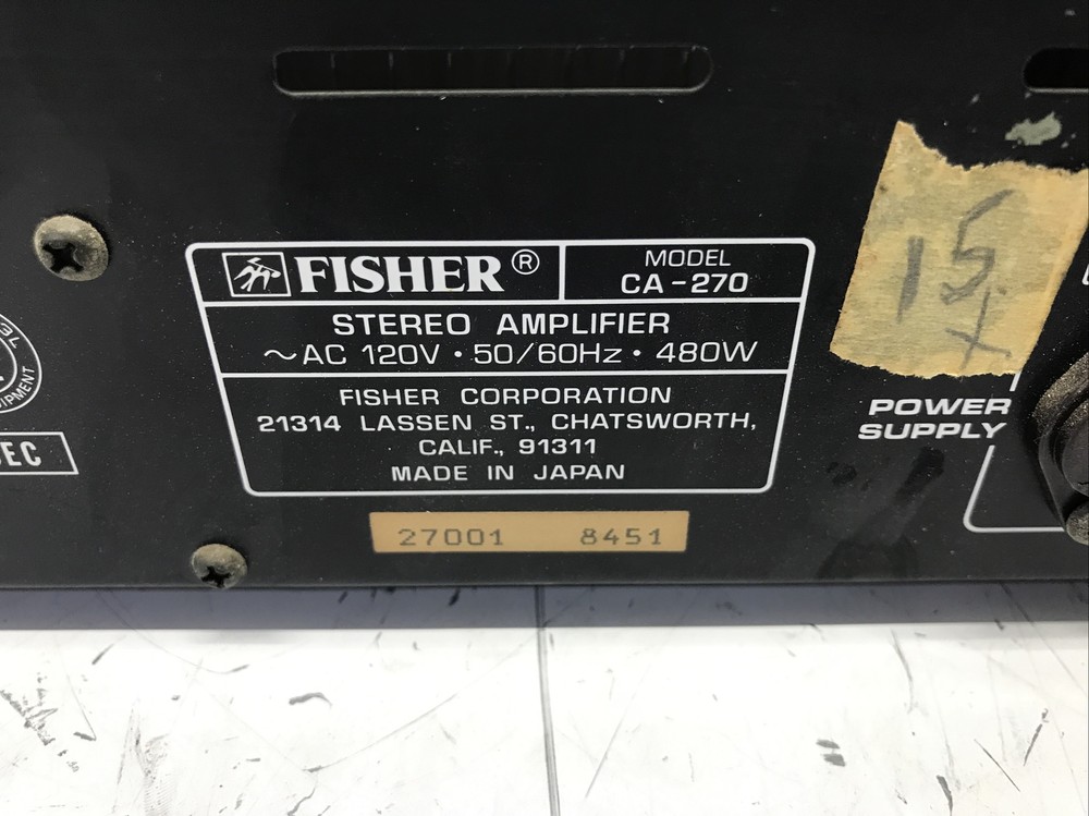 FOR PARTS, POWER ON NO SOUND OUTPUT Contains scratches and scuffs from previous use Includes Vintage Fisher CA-270 Stereo Amplifier Does not include any additional hardware or accessories not displayed Please see photos OFFERS WELCOME FREE SHIPPING TO THE CONTINENTAL UNITED STATES ONLY All shipping prices are quoted for The Continental United States. If you live outside of the Continental U.S. and your item cannot be shipped through a global shipping center we will contact you Returns accepted within 30 days. The buyer is responsible for return shipping. A restocking fee may apply. SOLD AS IS GK