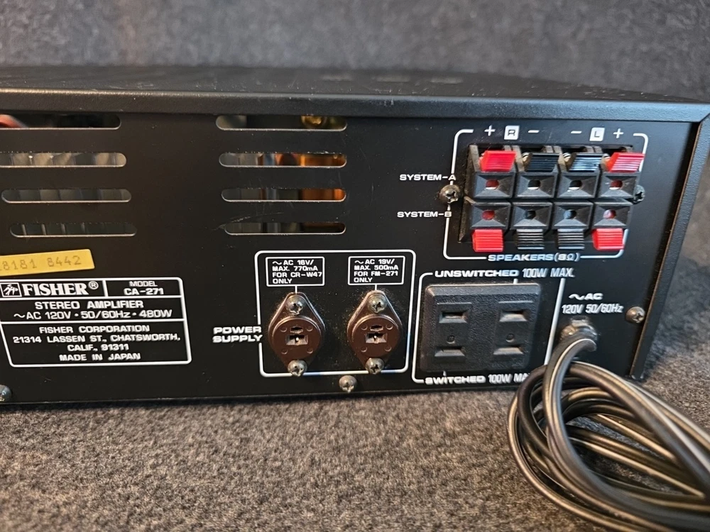 The Vintage Fisher CA-271 Power Stereo Amplifier is a classic piece of audio equipment made in Japan. Known for its quality and durability, this power amplifier from the Fisher brand is highly sought after by vintage audio enthusiasts. With its retro design and powerful sound, the Fisher CA-271 is a true gem for collectors of vintage electronics.