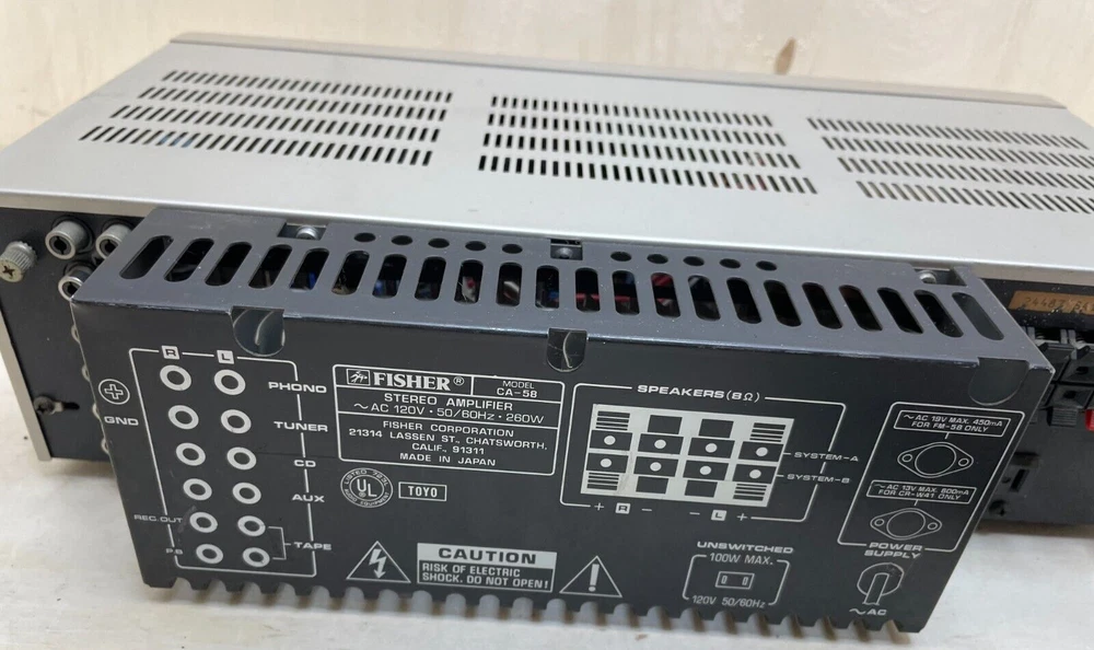 Untitled Document Store About Us Feedback Vintage Fisher CA-58 Stereo Integrated Amplifier Silver Corded R/L Stereo You are looking at a Vintage Fisher CA-58 Stereo Integrated Amplifier Silver Corded R/L Stereo Fisher Brand Reputation: Fisher was a well-regarded brand known for their audio equipment, particularly in the mid-20th century (mention this if you find positive reviews online about the CA-58's sound quality). Integrated Amplifier Design: Combines a preamplifier and power amplifier in one unit, offering a simplified setup for enthusiasts (briefly explain what a preamp and power amplifier do if the listing doesn't mention it). Features (to be confirmed in the listing or online research): Wattage Output: This will determine the amplifier's power and its ability to drive speakers. Input/Output Connections: Besides the mentioned R/L stereo RCA jacks, there might be other input options for connecting turntables, CD players, or tape decks. Speaker Connections: These will likely be speaker wire terminals. Great Condition. See pictures for condition. Thanks for looking. Check out our other Auctions! RETURNS We value our customers, and the opportunity to help provide you with your everyday needs. Our goal is to have quality customer service and provide quality products. We stand behind what we sell. We do offer return services consistent with our return policy. The return policy is as stated for each item in such condition: Brand New Items: Offer 7 days Money Back Guarantee for item defective upon delivery. New (Other) Items: Offer 7 days Money Back Guarantee for item defective upon delivery. Pre-Owned Items: We do not accept Returns for these items unless otherwise noted. Fair/Poor Condition: We do not accept Returns on these items as they are sold AS-IS. As this is our standard Return/Refund policy, we do stand behind our products. Some items may be different from this policy. They will be indicated in the auction if this is the case. Our Goal is 100% Feedback, so if you do receive an item that you are not happy with, please contact us before leaving feedback and we do what we can to make it right with you. SHIPPING We strive for the best shipping practices and experience. We ship based on a flat shipping price to an average location within the United States. We do not offer shipping outside of the continental US due to this shipping average. The only way in which we ship beyond that point is if Global Shipping options are selected on the individual item. FAST STANDARD SHIPPING Delivery typically in 1-5 business days EXPEDITED SHIPPING Expected Shipping within 1-3 business days. (Inquire to Expedited Shipping Charges) HANDLING TIMES As per our shipping in handling terms we adhere to a 1-day handling period as a policy. If an item is purchased early enough during the business day, then prompt shipping may be possible. If past standard midday shipping, then the following day the item will be given to the shipping courier. We resolve to use the most economical means of shipping depending on the size and weight of the package. Sometimes this means using USPS, UPS, and FedEx for deliveries. On rare occasions an item may be drop shipped and the companies courier may be used. In the event that a package is damaged, it is required to contact us within 24 hours of the package delivered. We will then proceed to work with the shipping company to recoup any damages incurred on behalf of the buyer. It is imperative to provide good pictures and description of the damage. PAYMENTS We accept PayPal and all of its payment options for secure and safe payments. Special financing available Select PayPal Credit at checkout to have the option to pay over time. Qualifying purchases could enjoy No Interest if paid in full in 6 months on purchases of $99 or more. Other offers may also be available. Interest will be charged to your account from the purchase date if the balance is not paid in full within 6 months. Minimum monthly payments are required. Subject to credit approval. See terms - opens in a new window or tab The PayPal Credit account is issued by Synchrony Bank. Free eBay Template from eCommercepreneurs