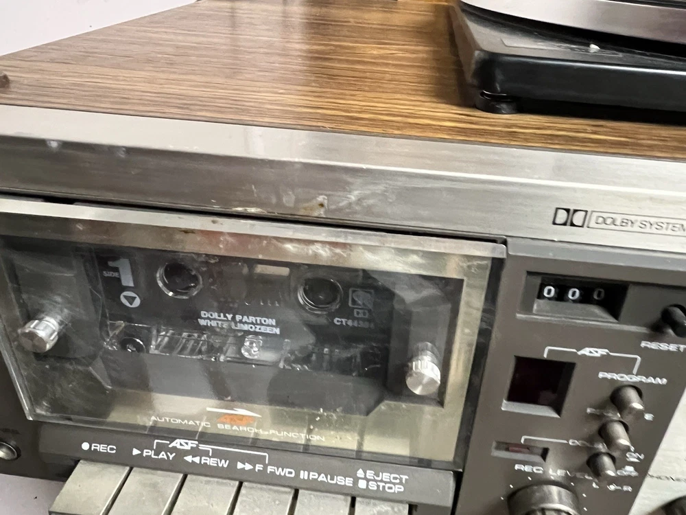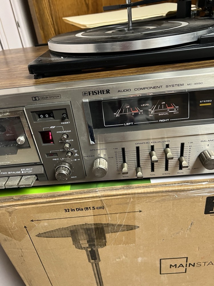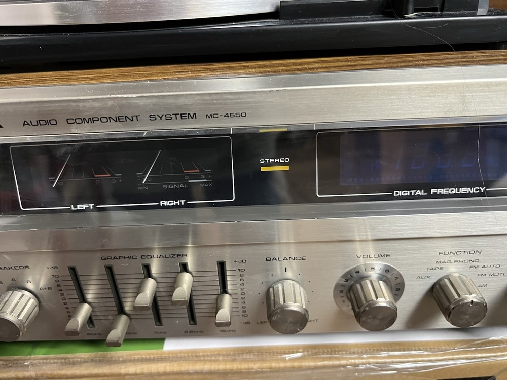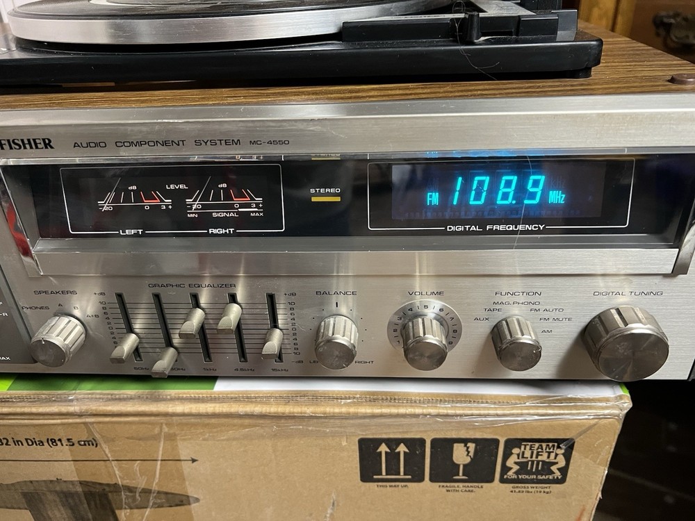 The Vintage Fisher MC-4550 Audio Component System is a sought-after piece for collectors and enthusiasts of vintage audio equipment. Made by the well-known brand Fisher in Japan, this stereo receiver offers a unique blend of retro charm and modern functionality. With its classic design and reliable performance, this audio component system is sure to delight fans of vintage audio technology. The cassette.player works, radio and turn table as well. It comes with an attached 8 track player which I'm not sure works until I find a 8 track tape to test it. I will update the ad. Refer to pictures for condition. It is missing the record player hood.