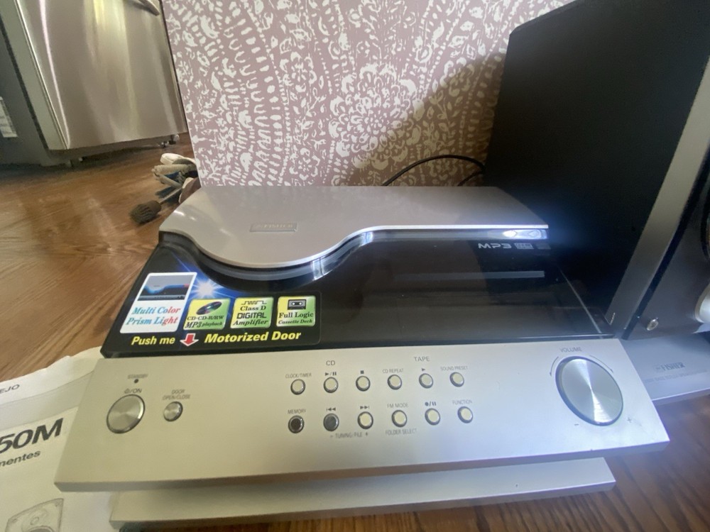 Experience a blend of retro and modern with the Vintage Fisher Micro Shelf System, model DCS-MCR350M. This compact audio system comes equipped with a wireless remote control, allowing you to effortlessly navigate through your music choices. Enjoy your favorite CDs, MP3s, and even cassette tapes, as this unit includes a convenient CD changer and a cassette deck, perfect for those who cherish the warmth of analog sound.The Fisher brand is synonymous with quality, and this shelf system is no exception. With its wireless connectivity, you can enjoy a neat and clutter-free setup, free from the tangle of cords. Whether it's for a cozy home audio experience or a nostalgic addition to your collection, this Micro Shelf System hits all the right notes.