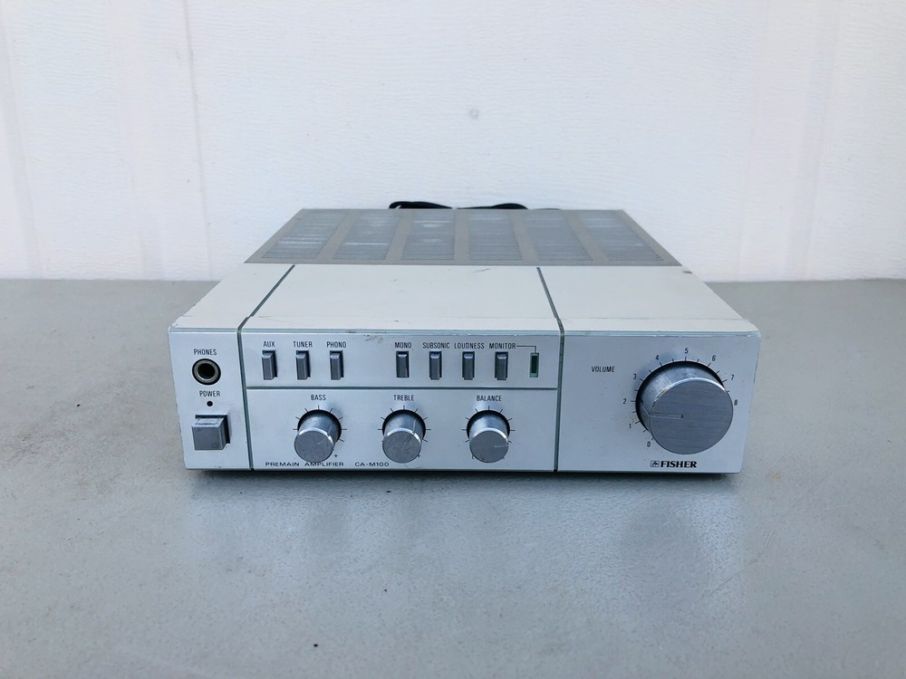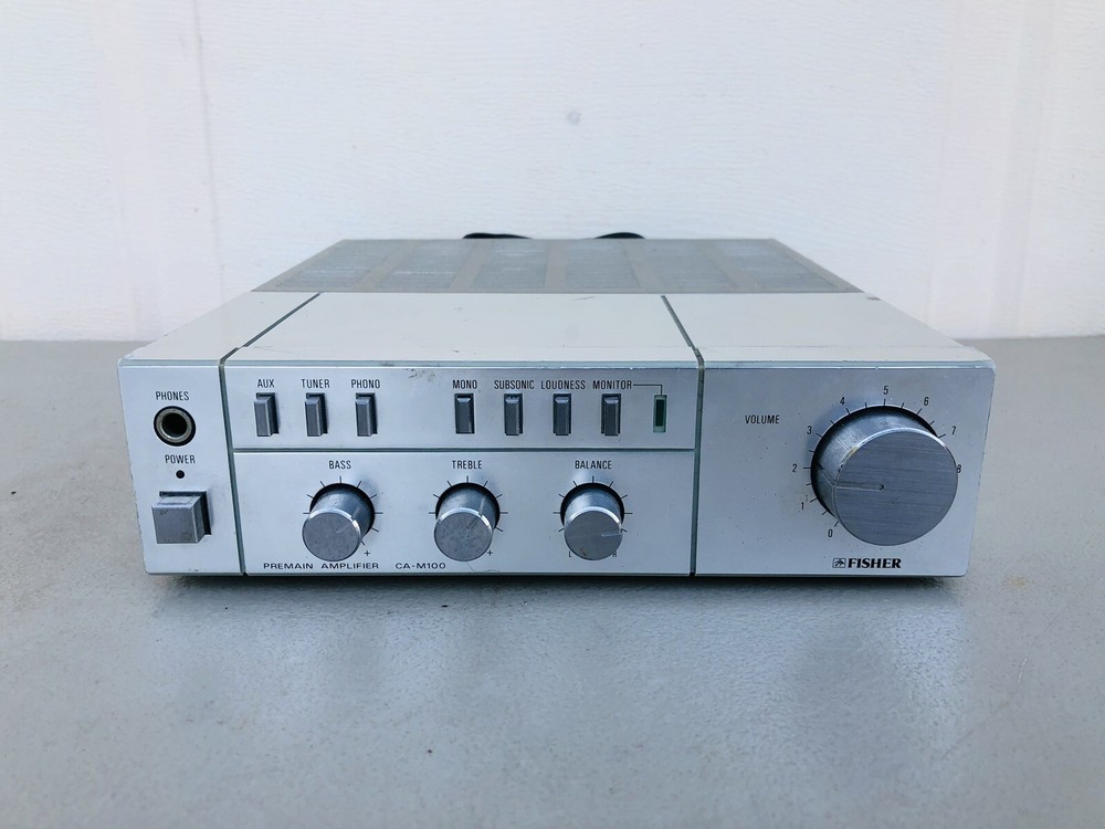 Vintage Fisher Premain Amplifier CA-M100 Unit powers on but has not been tested further. AS-IS, Not fully tested. Shows normal cosmetic use and age....