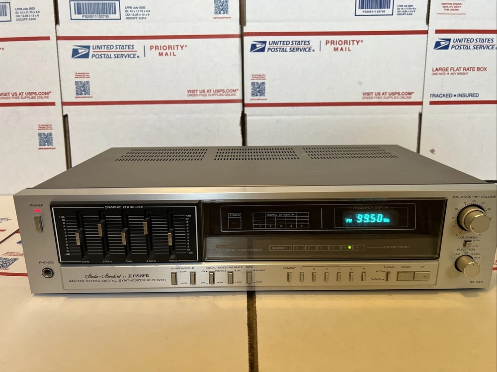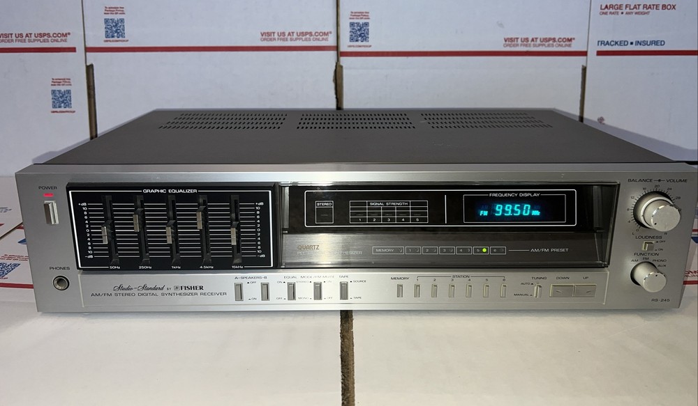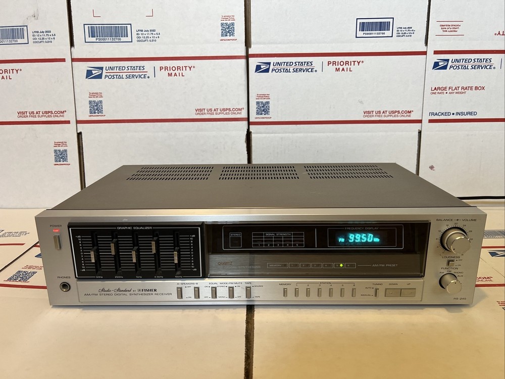 Preowned Tested All functions work Vintage Fisher RS-245 Studio-Standard Am Fm Stereo Receiver This is a vintage electronic item so I am unable to warranty this item But it will arrive working Cosmetic condition is Super clean Excellent Nicest I have seen Shipping cost is based on size and weight Will be carefully packed to arrive to you safely