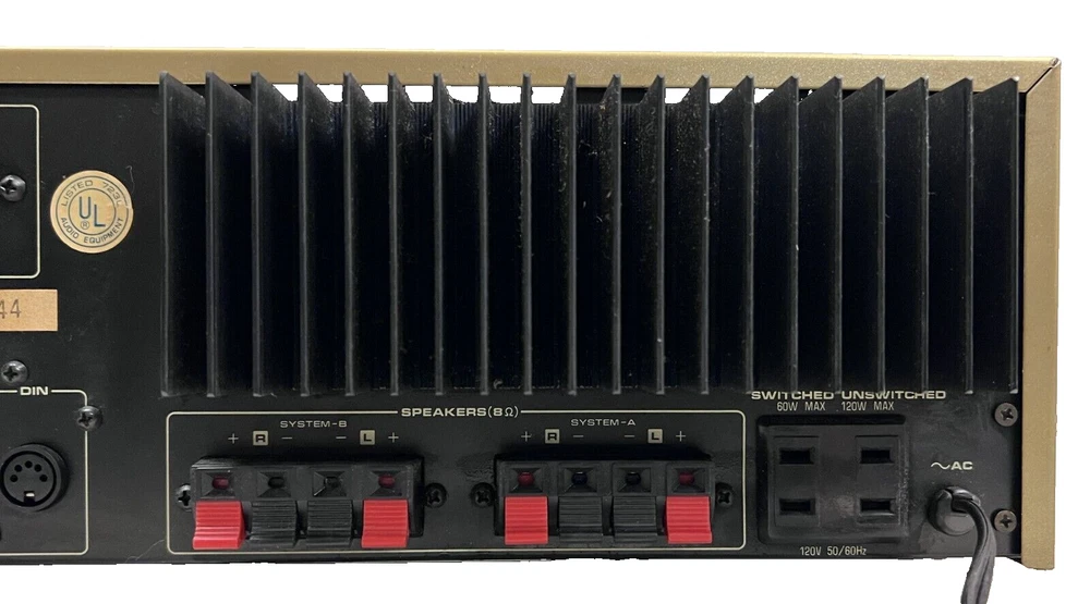 Our Restoration Procedures: 1. Check Out The Stereo, If There Is Anything Wrong, We Will Fix It. 2. Clean & Lubricate All Of The Switches & Controls. 3. Electrolytic Capacitor Check, If There Is Any Weak One, We Will Change It. 4. FM IF & MPX Circuit Alignment By Using A Sweep Signal Generator & Victor Scope. 5. Change Burned Lamps. 6. Check Out & Adjust Power Amplifier's Center Voltage & Standby Current. 7. Audio Frequency Response & Distortion Test. 8. Clean All Of The Knobs By Ultrasonic Cleaner. 9. Functional Check. 0. All Sales We Give A 90-Day Labor & Parts Warranty, If There Is Any Problem, You Send It Back We Will Repair It For You Free Of Charge, You Pay The Send-In Postage, We Pay The Send-Back Postage. Specifications Tuning range: FM, MW Power output: 50 watts per channel into 8Ω (stereo) Frequency response: 20Hz to 20kHz Total harmonic distortion: 0.02% Damping factor: 50 Input sensitivity: 0.6mV (MC), 2.5mV (MM), 150mV (line) Signal to noise ratio: 80dB (MM), 100dB (line) Dimensions: 440 x 400 x 132mm