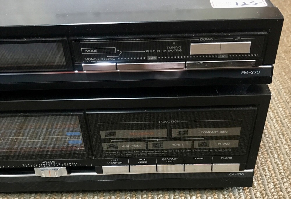 Excellent working condition fully tested with tuner, turntable, tape deck and CD player all played through the amplifier with equal balance Cosmetic condition also excellent except for top back left corner of tuner has many scratches See last two photos Comes with piece of wire for makeshift antenna Did not pick up many stations without it Attach to something large and metal for best results Measures: Stacked together 17-1/2”x11-1/4”x6-1/2”