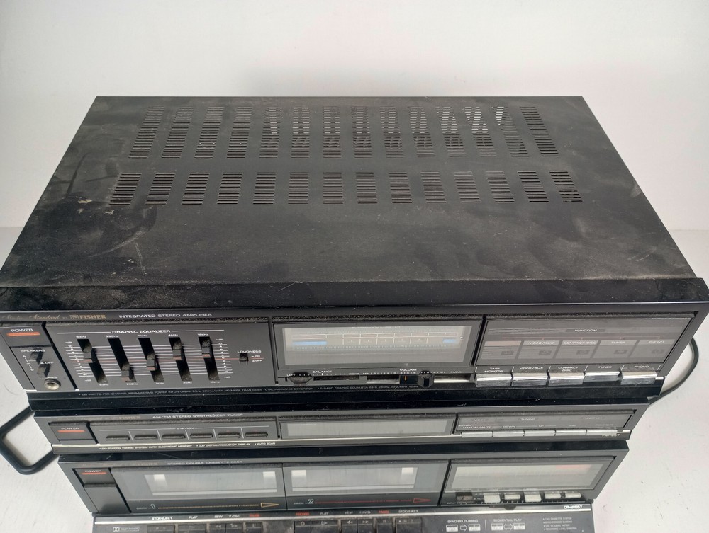This is "Vintage Fisher Stereo + Cassette Deck + Amp (3 Pc Stereo System) Studio Standard" This is a 3 tier vintage Stereo System Setup. Model number- Stereo Amp: CA-857 Stereo Tuner: FM-857 Cassette Deck: CR-W857 This is untested but looks to be in good physical shape. This is being sold as "for parts" as this is being sold to someone with some electronic expertise or a desire to restore this. I have no idea what components are working or if anything is damage; But the outside looks to be in good condition. May need an adapter of some sort for plugs or may need other components. Being sold as-is for someone looking for a project or replacement parts for their project. All 3 Pieces will be safely packaged together. This will be a heavy and large package as this unit weighs roughly 27 pounds. May be cost prohibitive to order this far away because of shipping prices. Pricing is as cheap as i can go on this unit as it will be timely to package this safely.