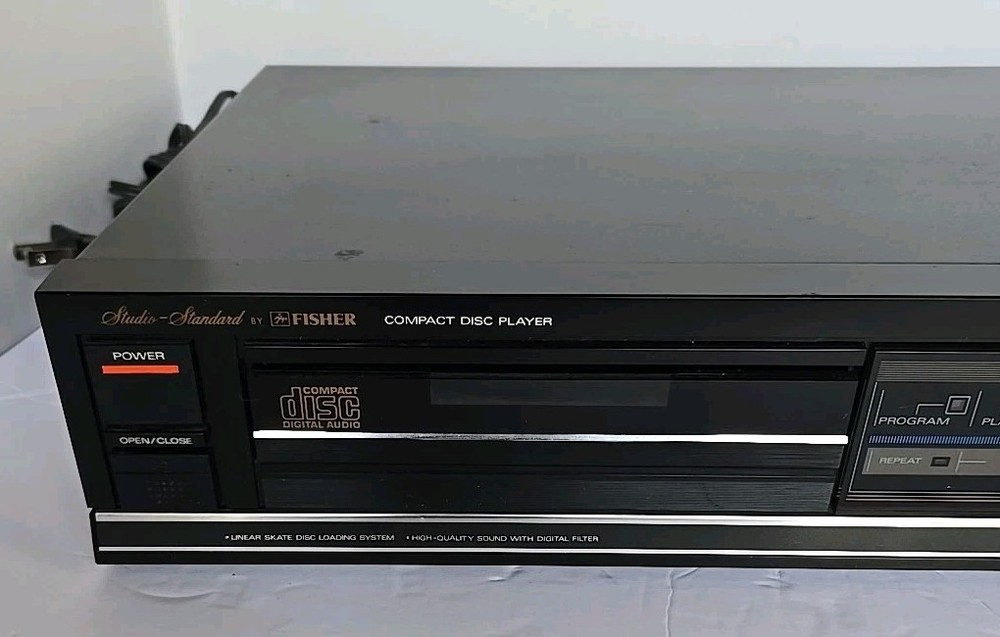 This vintage Fisher Studio Standard AD-853 Compact Disc Player is a great addition to any home audio system. Made in Japan in 1986, it is compatible with CD and CD-R/RW formats, and has stereo L/R RCA audio outputs for easy connection to your amplifier or speakers. The black CD player has a CD changer capacity of 1 and is in great working condition.