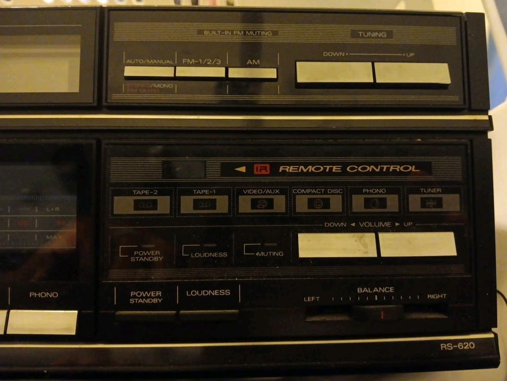 The Vintage Fisher Studio Standard RS-620 Remote AM/FM Stereo Receiver is a working piece of vintage audio equipment. Made in Korea, this stereo receiver includes a remote control for easy operation. Despite the absence of A/V cables, this model is perfect for achieving that retro audio vibe in your home. Ideal for collectors or enthusiasts looking to add a classic touch to their audio setup.