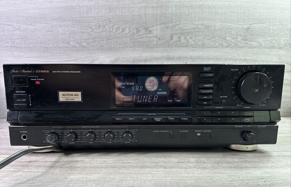 Vintage Fisher Studio Standard RS-625 AM/FM Stereo Receiver in Good used condition. Item turns on, lights up and all buttons/knobs work. Please see photos! Please see photos for details and condition. We welcome your correspondence so please feel free to message us with any additional questions. We do combine shipping on most of our listings so please see our other items and ask for an invoice prior to checking out so we can do this for you! Thank you, Finicky Fox Collectables LLC