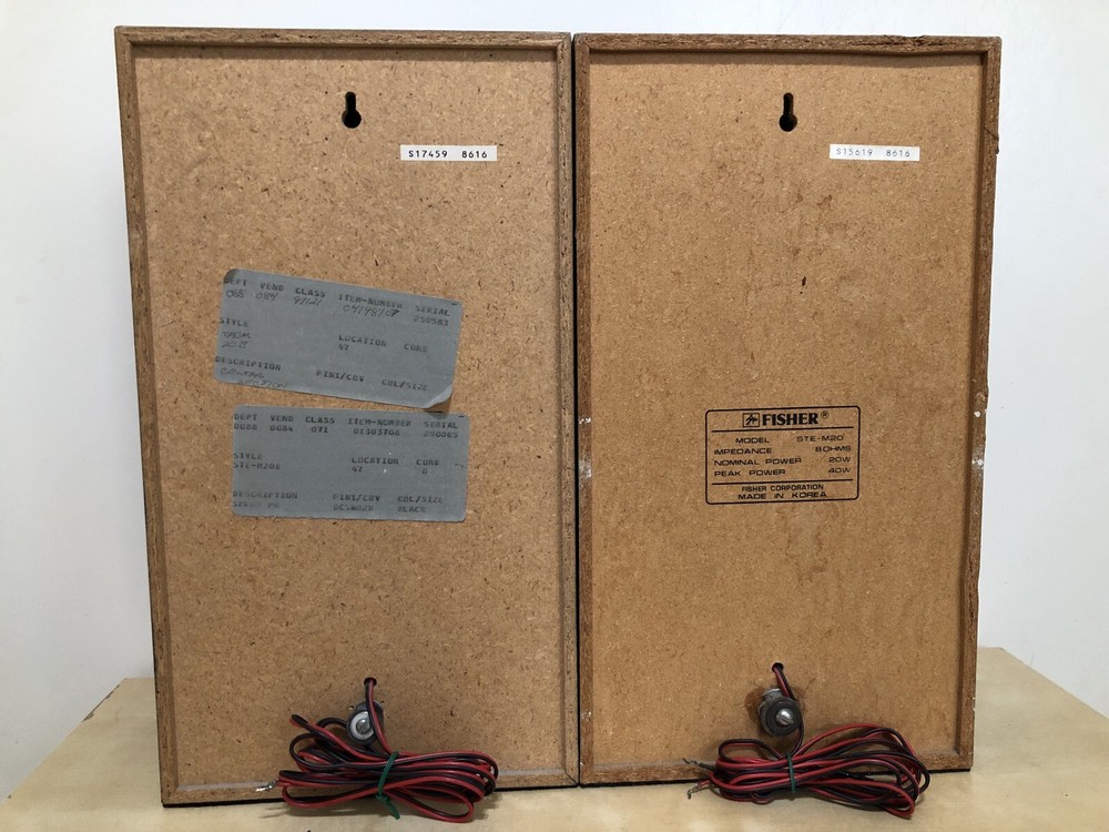 Vintage Studio-Standard by Fisher. Speaker System STE-M20. Speakers work fine. Have signs of use. Made in Korea. Features: Model: STE-M20 IMPEDANCE: 80HMS NOMINAL POWER: 20W PEAK POWER: 40W Shipped with FedEx Ground or FedEx Home Delivery.