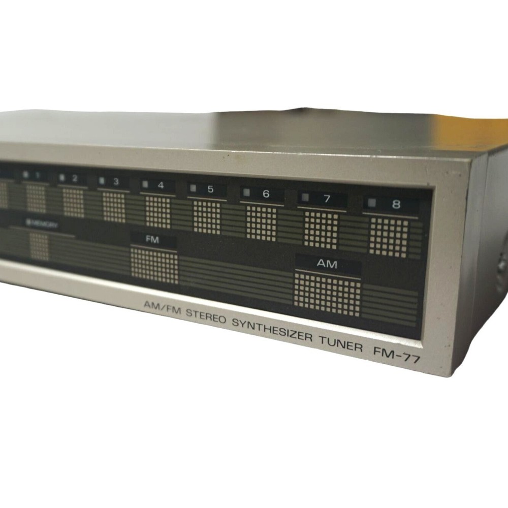 This vintage Fisher Studio Standard Tuner FM-77 is in good condition and works. It does not come with a manual, but it does come with the power cord. There is some corrosion on the metal prongs of the power cord, but this does not affect the functionality of the tuner. This tuner is a great addition to any vintage audio system. It has a clear and accurate sound, and it is easy to use. It is also a great value for the price. Features: • Power Cord is Included • Ships Free • No Remote is Included • Frequency range: 88-108 MHz • Signal-to-noise ratio: 70 dB • Dimensions: 17 x 12 x 4 inches Working condition. Cosmetic blemishes, such as surface scratches or slight oxidation of metal can be clearly see in photos. Please, if you have any questions about this listing, feel free to message our shop.