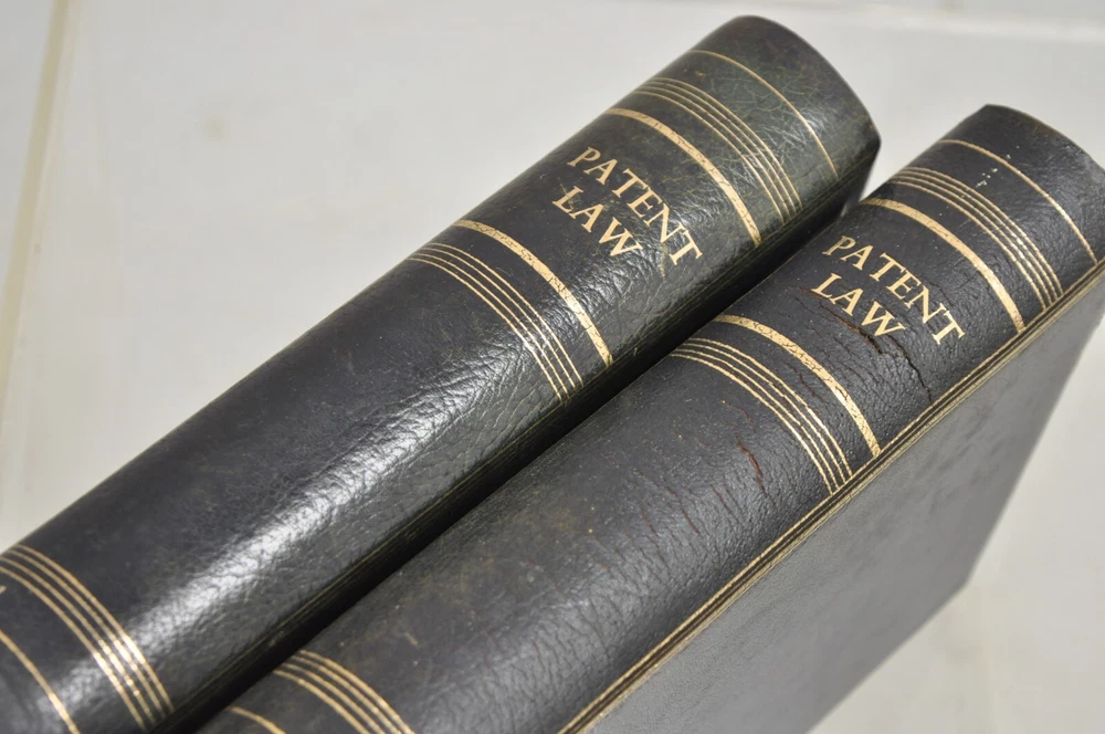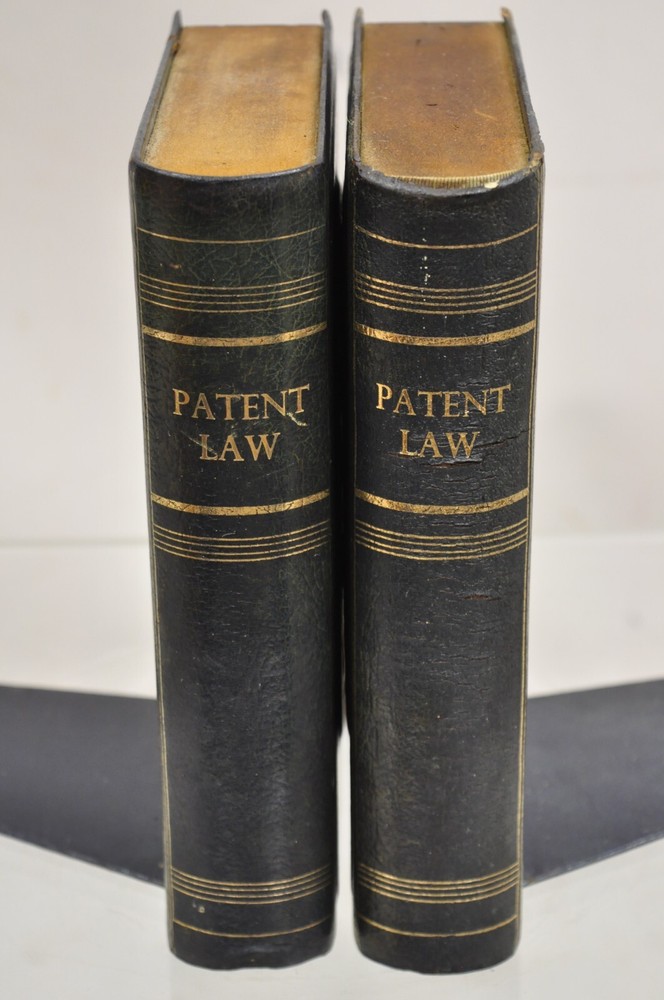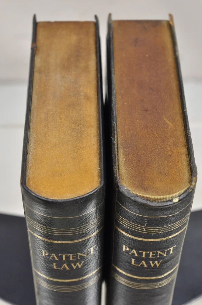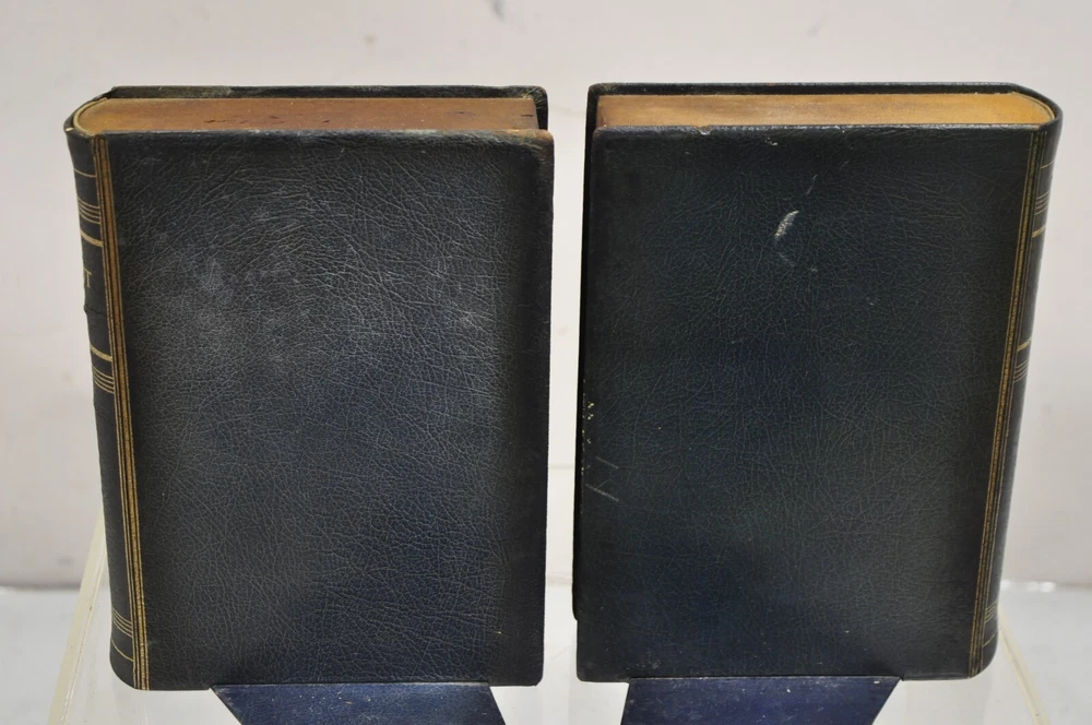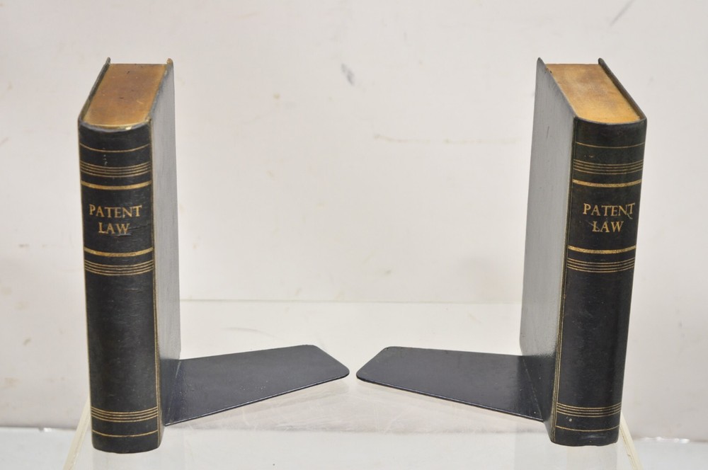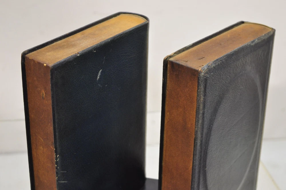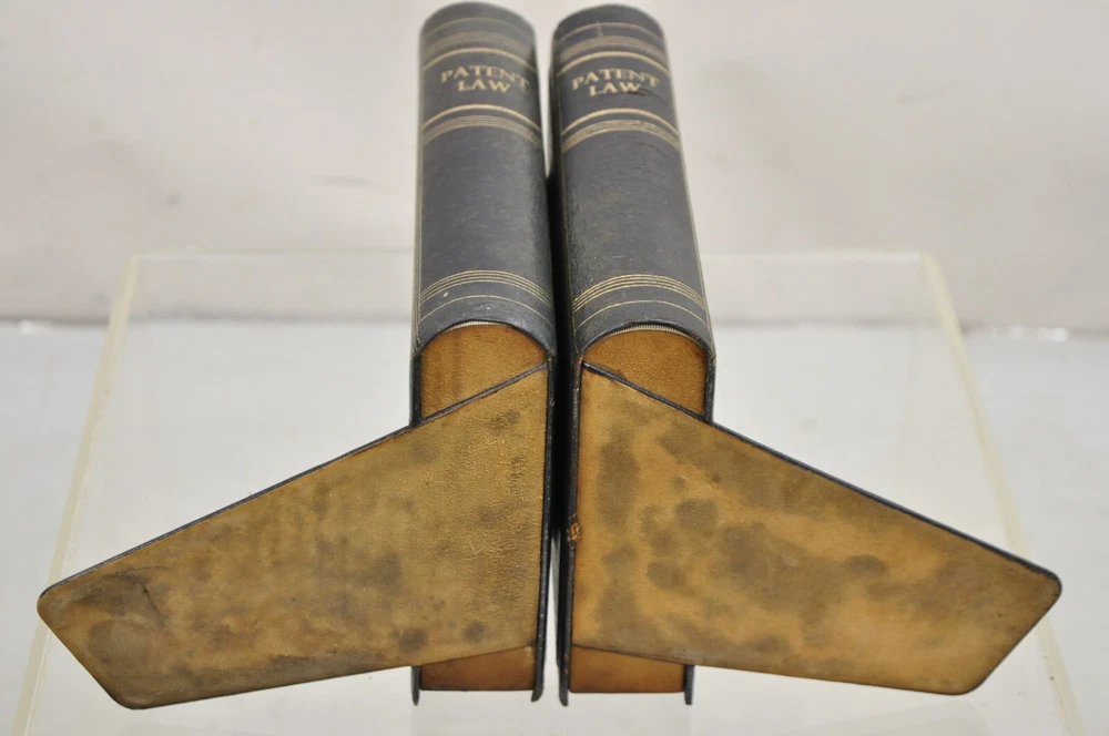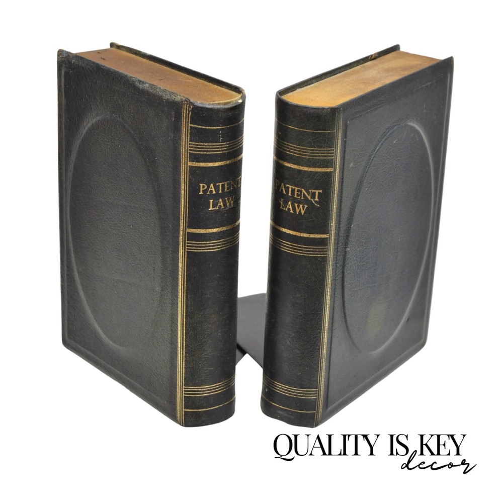 ***PLEASE READ THE ENTIRE LISTING*** Item : Vintage Italian Blue/Green Leather Bound "Patent Law" Faux Book Bookends (C) - Pair Details : Leather-bound faux book form, gold gilt details, nice larger size, original aged/distressed finish, very unique vintage bookends Age : Early 20th Century Measurements : 9.5 " H x 7.25" W x 7" D. Book alone is 2" W Condition : Discoloration and wear to leather with examples pictured. Desirable distressing. Good vintage condition being structurally sound with age appropriate signs of normal use as pictured. Overall very nice. Please review all images as they are considered part of the item description. Please keep in mind that we offer vintage and pre-owned items that can show normal signs of use including some surface scratches and dings.