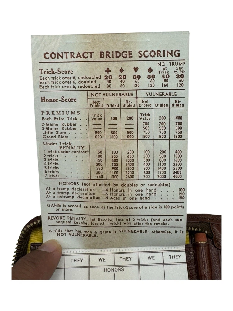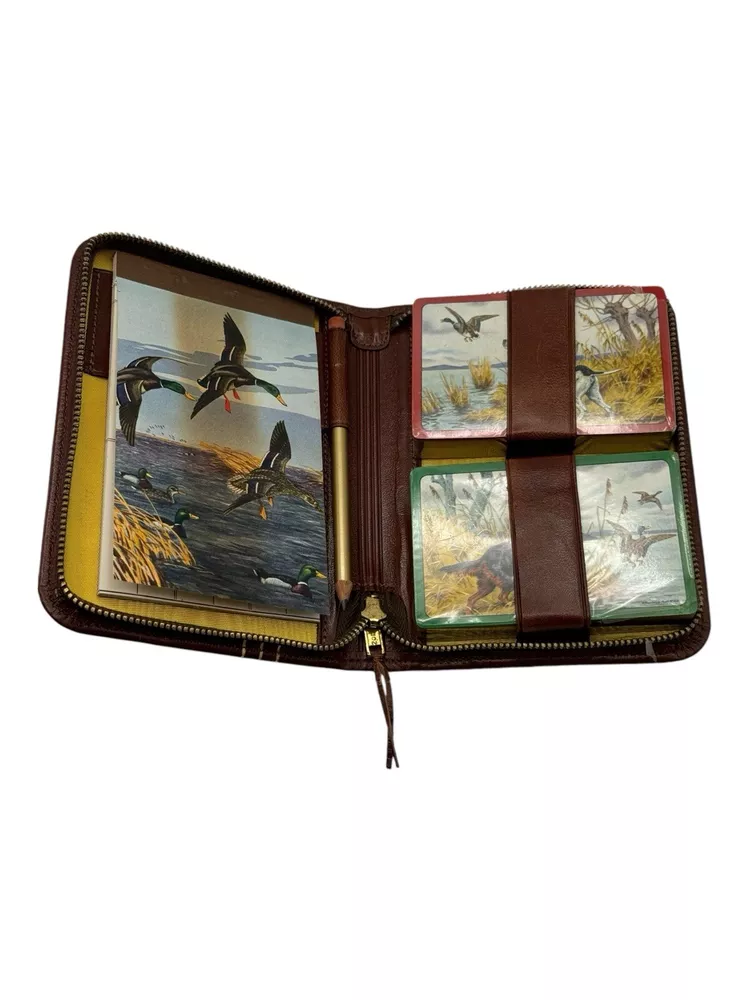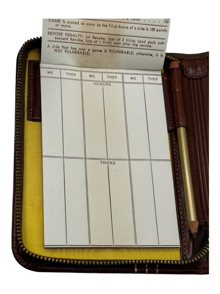 Vintage Leather Bound Bridge card Case Wallet Set With Pencil + 2 Sealed Decks