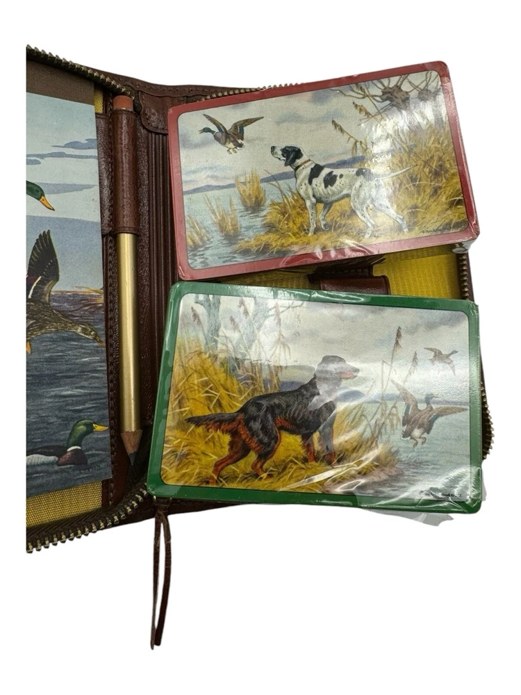 Vintage Leather Bound Bridge card Case Wallet Set With Pencil + 2 Sealed Decks...