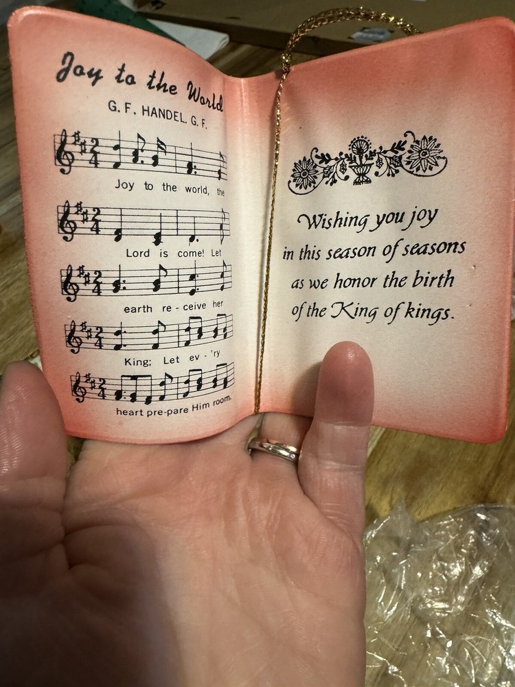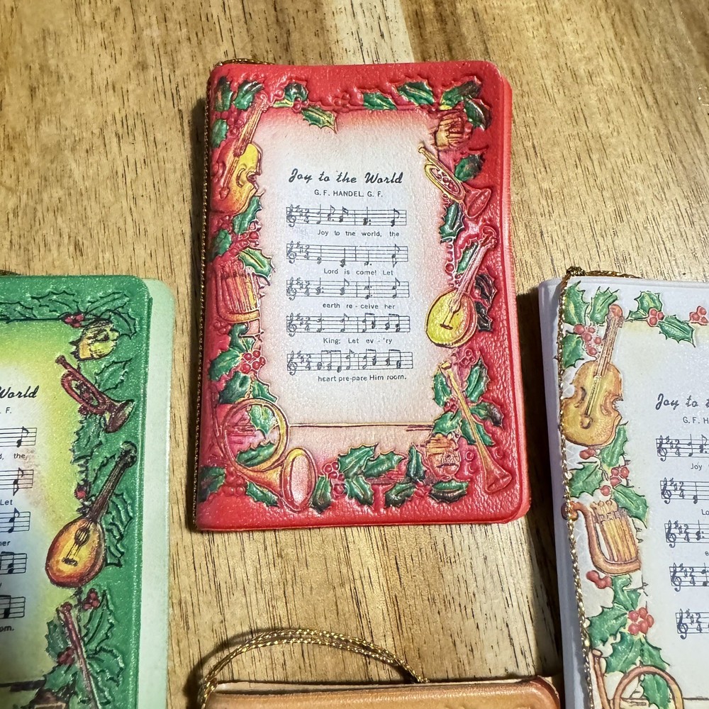 This vintage Joy To The World ornament set is a must-have for any Christmas enthusiast. The six beige leather bound ornaments feature a 1950s theme with the word "Joy" beautifully crafted in the center. Perfect for collectors or those who love all things vintage, this set is sure to add a touch of nostalgia to your holiday decor. Each ornament is made from high-quality leather and includes intricate details that are sure to impress. Whether displayed on your tree or as a part of a larger holiday display, these ornaments are sure to bring a smile to your face. Purchase this unique and charming set today and spread the Joy of the holiday season!