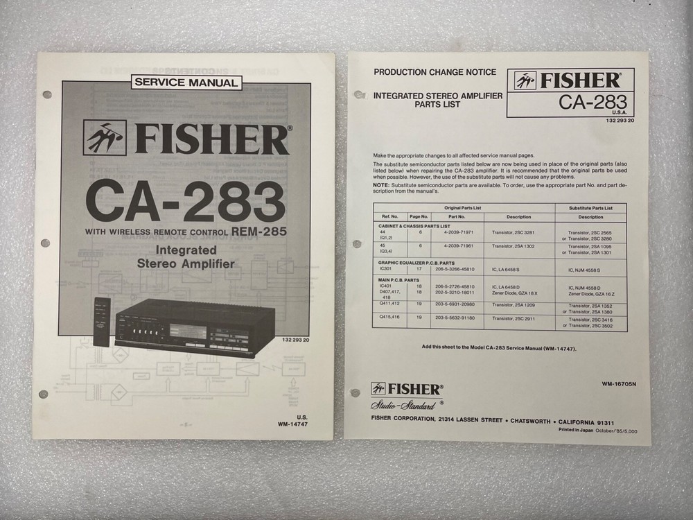Original OEM service manual, includes, part numbers, schematics, diagrams, charts ect.. . MODEL - Vintage Original Fisher CA-283 Integrated Stereo Amplifier Service Manual Repair Condition :This is an ORIGINAL manual, not a photocopy, reprint or digital version. They may show some wear since most of these are vintage. Some have writing and notes written on the inside and outside of the manuals, mostly useful info. Some manuals have creases and edge wear due to storage. I'm currently in the process of listing an entire electronics repair shops, collection of vintage service manuals. Please click on my eBay store as I will be listing these manuals over the next several months or years!!!!! Thanks for your time and feel free to ask questions if needed. Please see all pictures for detailed description. We use the Ebay Global Shipping program for all International sales, Ebay sets the cost of global shipping, International shipping cannot be combineIf free or flat rate shipping is offered it is to the continental U.S only. All others will be calculated by zip code.We will ship to PO BOXES, APO, FPO, DPO, Puerto Rico, US Virgin Islands but buyer must contact us first as the item will need to go USPS and will more then likely occur an extra charge. Purchase limited to size and weight the USPS allows. Free Pick up is an option but payment must be made in cash upon pick up. Once payment is made we cannot cancel the order . We ship only FED EX, UPS or USPS priority Some Items may require a signature at delivery. All used items are sold AS-IS As described. We do our very best to describe the item listed. 3-77