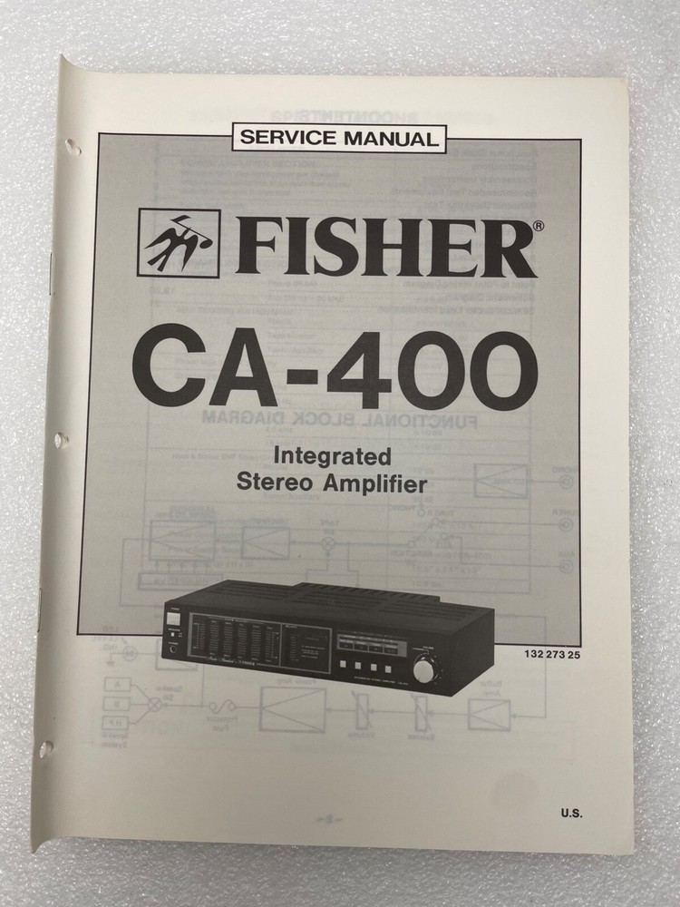 Original OEM service manual, includes, part numbers, schematics, diagrams, charts ect.. . MODEL - Vintage Original Fisher CA-400 Integrated Stereo Amplifier Service Manual Repair Condition :This is an ORIGINAL manual, not a photocopy, reprint or digital version. They may show some wear since most of these are vintage. Some have writing and notes written on the inside and outside of the manuals, mostly useful info. Some manuals have creases and edge wear due to storage. I'm currently in the process of listing an entire electronics repair shops, collection of vintage service manuals. Please click on my eBay store as I will be listing these manuals over the next several months or years!!!!! Thanks for your time and feel free to ask questions if needed. Please see all pictures for detailed description. We use the Ebay Global Shipping program for all International sales, Ebay sets the cost of global shipping, International shipping cannot be combineIf free or flat rate shipping is offered it is to the continental U.S only. All others will be calculated by zip code.We will ship to PO BOXES, APO, FPO, DPO, Puerto Rico, US Virgin Islands but buyer must contact us first as the item will need to go USPS and will more then likely occur an extra charge. Purchase limited to size and weight the USPS allows. Free Pick up is an option but payment must be made in cash upon pick up. Once payment is made we cannot cancel the order . We ship only FED EX, UPS or USPS priority Some Items may require a signature at delivery. All used items are sold AS-IS As described. We do our very best to describe the item listed. 3-73