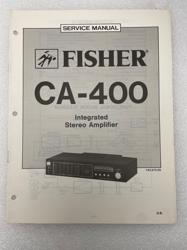 Original OEM service manual, includes, part numbers, schematics, diagrams, charts ect.. . MODEL Vintage Original Fisher CA-400 Integrated Stereo Amplifier Service Manual Repair Condition :This is an ORIGINAL manual, not a photocopy, reprint or digital version. They may show some wear since most of these are vintage. Some have writing and notes written on the inside and outside of the manuals, mostly useful info. Some manuals have creases and edge wear due to storage. I'm currently in the process of listing an entire electronics repair shops, collection of vintage service manuals. Please click on my eBay store as I will be listing these manuals over the next several months or years!!!!! Thanks for your time and feel free to ask questions if needed. Please see all pictures for detailed description. We use the Ebay Global Shipping program for all International sales, Ebay sets the cost of global shipping, International shipping cannot be combineIf free or flat rate shipping is offered it is to the continental U.S only. All others will be calculated by zip code.We will ship to PO BOXES, APO, FPO, DPO, Puerto Rico, US Virgin Islands but buyer must contact us first as the item will need to go USPS and will more then likely occur an extra charge. Purchase limited to size and weight the USPS allows. Free Pick up is an option but payment must be made in cash upon pick up. Once payment is made we cannot cancel the order . We ship only FED EX, UPS or USPS priority Some Items may require a signature at delivery. All used items are sold AS-IS As described. We do our very best to describe the item listed. 3-74