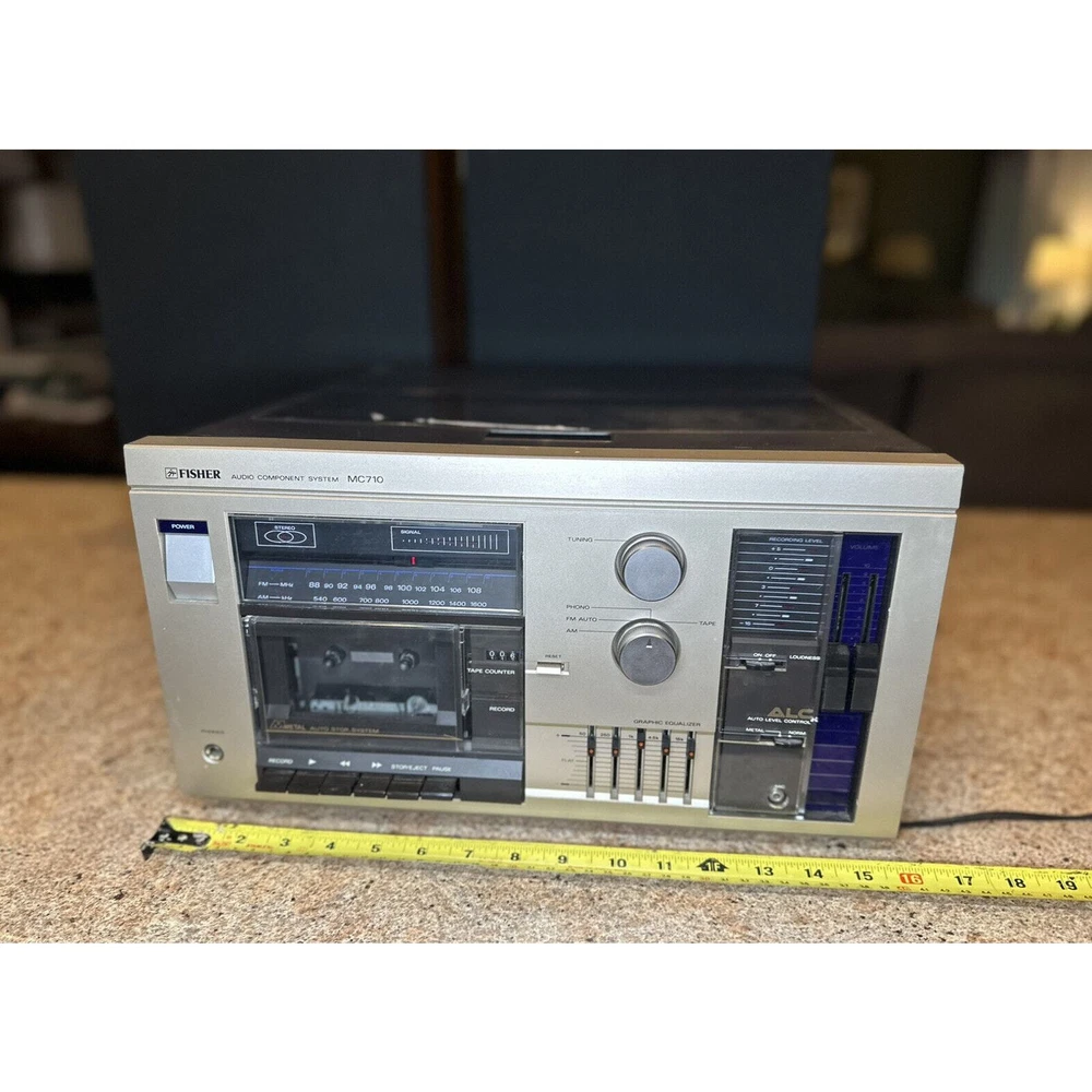 <![CDATA[<div>Vintage RARE FISHER MC 710 STEREO AUDIO COMPONENT SYSTEM Cassette Radio LP. Everything works beautifully with the exception of the record player. It looks to have a new needle and makes sound when you touch the needle. But the record player does not turn when you pull the arm over. It looks like it could be a belt. Also, included are the two speakers that was sold with a stereo system Condition: See Photos for Detailed Visual Description of Actual Item You Will Receive. Please view every picture before purchase to insure you know details about this item. The pictures serve as a visual description of this item. If you click on the pictures within the listing, they will enlarge