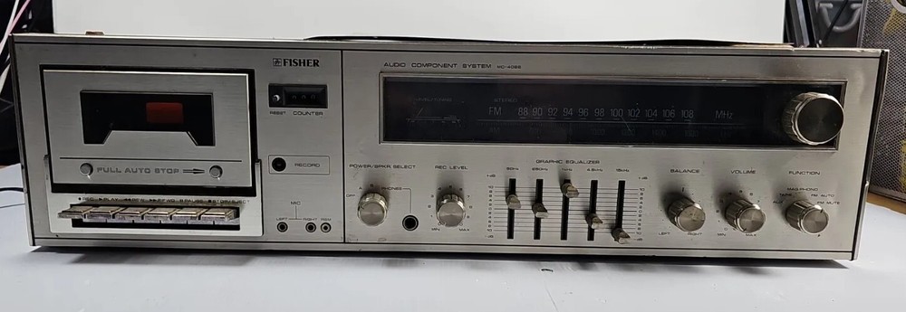 Vintage FISHER STEREO AUDIO COMPONENT SYSTEM MC-4026 Cassette Radio AS IS. Not sure to how to operate this unit I don't see any power buttons when I plug in there's no lights that come on selling for parts or repair as is Please see photos WHEN OFFER IS ACCEPTED OR ITEM PURCHASED, THERE WILL BE NO CANCELLATION!!!!!!