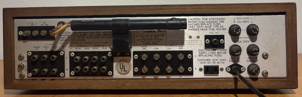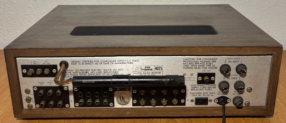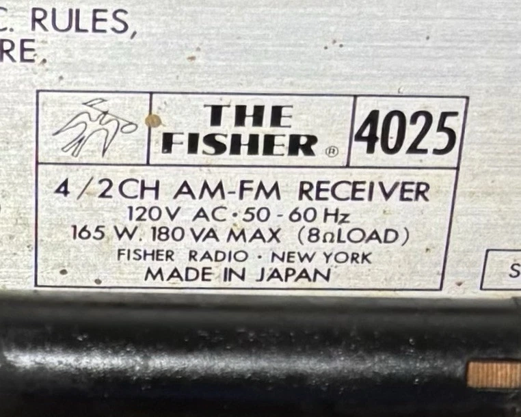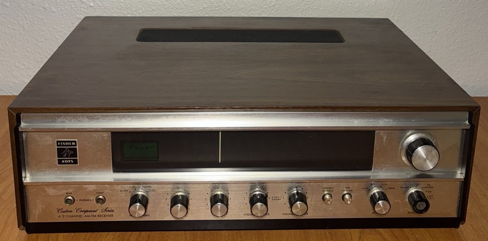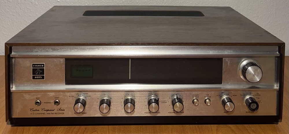 Vintage Rare (circa 1972) Fisher 4025 2/4 Channel Stereo Receiver: Unit does not power on; unable to test. Selling As-Is, in For-Parts-or-Not-Working condition, or for repair. Pictures best describe cosmetic condition. Made in Japan.