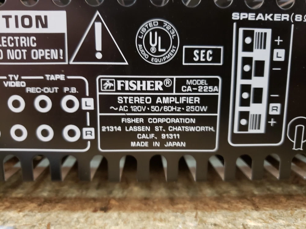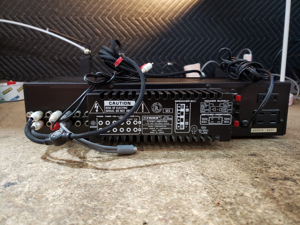 Vintage Studio Standard Fisher CA-225A Integrated Amplifier - Tested Power On This item is tested for power on only. Item powers on. We do not have the necessary accessories or knowledge to test the device further. We have no login or passwords for the device. Comes with everything shown in pictures. Inv. Location: L7 Disclaimer: We are an electronics recycling center, and this item was donated to us. We are selling as is FOR PARTS/UNTESTED.