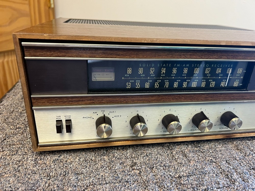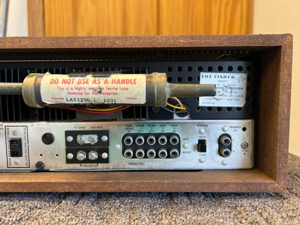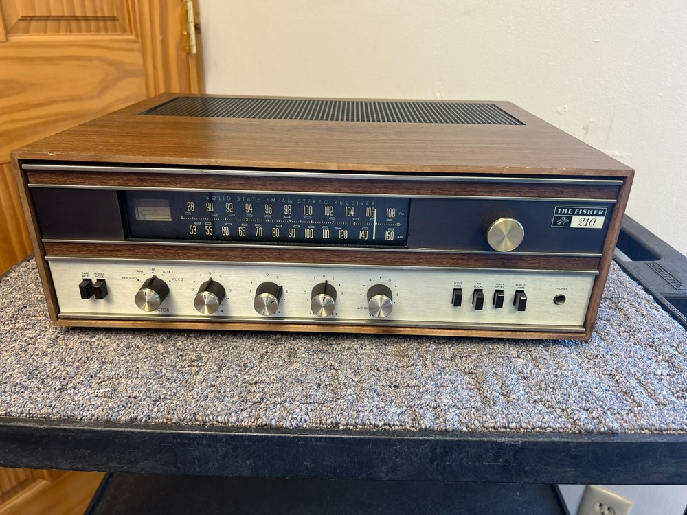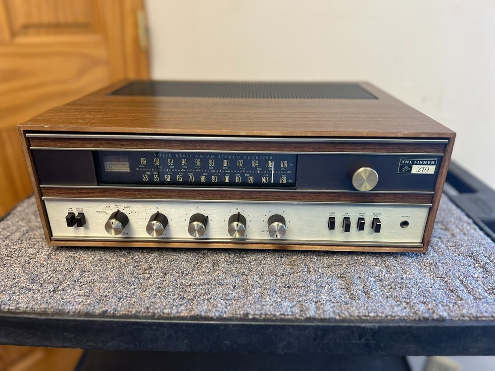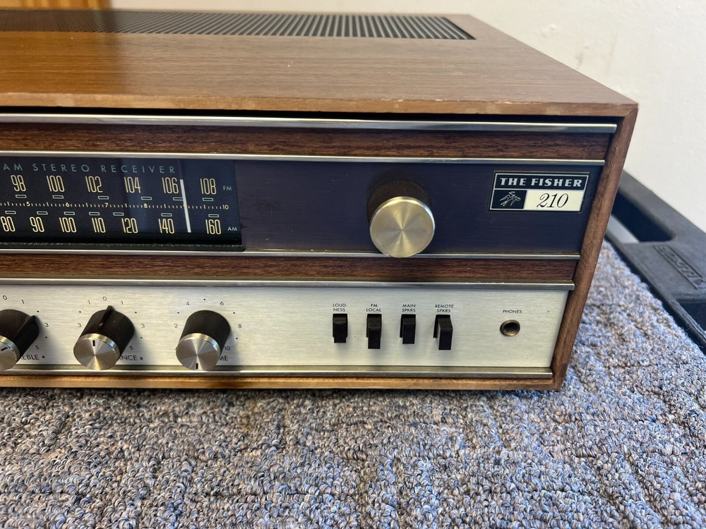 Vintage 70's Fisher AM/FM Stereo Receiver Model: 210-T Condition: Tested good, works great. Re-caped power supply only. The old caps are shown in photo. In nice cosmetic condition, some light scratches/marks. Because the power switch is part of the volume control, there is a minor static in the speakers at turn on. The volume is quiet after that. All controls have been flushed with Deoxit D5. **Will ship UPS ground and be packed very well for a safe arrival. Local pick up also available!