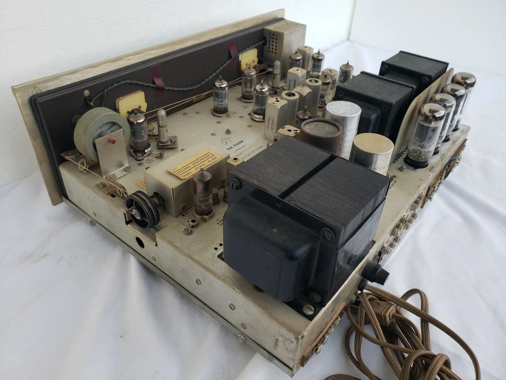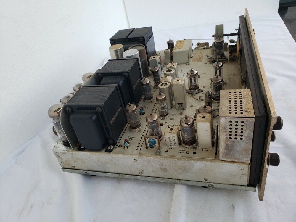 We only tested, and did not clean or replace anything. Sorry we do not know its service history because we are not the original owner. Our tube tech has tested all functions and did not find any issues. Sound is clear, powerful, and evenly balanced. All tubes light up and work properly. Tuner and all inputs were tested. Will be packed very securely for safe delivery. We have shipped vintage tube audio equipment for many years, and are always extra careful. Please use zoom to inspect everything closely, and ask us any questions before committing to purchase. Open to offers, but please stay close to the price. Thank you for viewing!